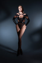 Challenge the boundaries of fashion with the Allure 2007 Latex-Look Vinyl & Mesh Drop Shoulder Bodysuit. Boldly embody risk-taking style and be the talk of the night. Show off your adventurous spirit with the provocative design and unleash your inner wild side. Take on the night with confidence in this daring and seductive bodysuit. Don't just own the dance floor, own the night.