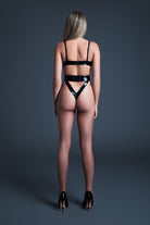 Cause a stir in the bedroom with this daring bodysuit! Embrace the boldness of Latex-Look Vinyl combined with the subtle allure of mesh. The high cut design flatters your curves and the adjustable straps ensure a perfect fit. Take a risk and unleash your inner seductress with Crave Me.