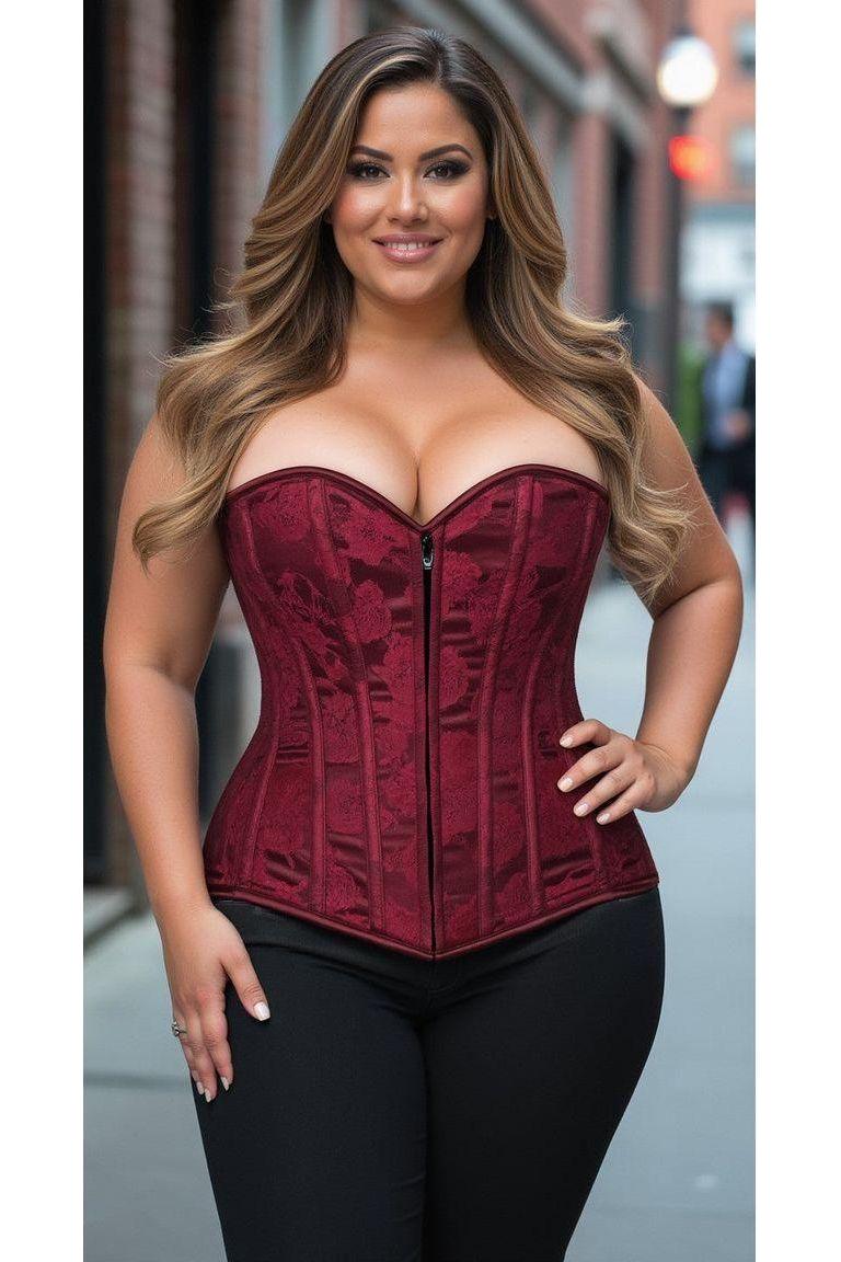 Daisy Wine Lace Overbust Corset w/Zipper LV-65