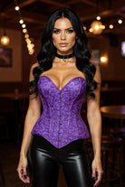 Turn heads in this stunning purple lace corset, featuring a romantic floral overlay and dramatic hourglass shaping. Crafted with durable acrylic boning, this structured piece beautifully defines the waist while offering comfortable flexibility. The sweetheart neckline and classic lace-up back complete the look — perfect for boudoir styling, special occasions, or layering as a fashion statement.