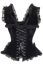 Daisy TD-182 Black Velvet & Lace Steel Boned Corset w/Cap Sleeves