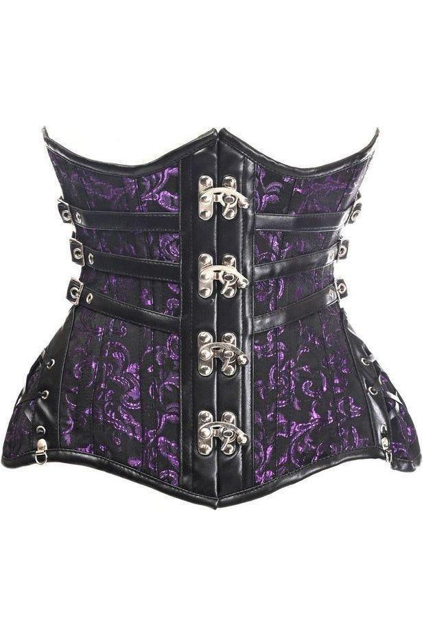 Daisy Corset CURVY Steampunk Black/Purple Brocade Steel Double Boned Under Bust Corset