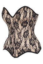 Daisy TD-230 Nude Satin w/Black Lace Overlay Steel Boned Overbust Corset