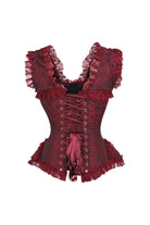 Daisy TD-123 Red/Black Brocade & Lace Steel Boned Corset w/Cap Sleeves