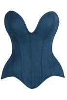 Daisy Steel Boned Blue Suede Deep Plunge Overbust Corset Top