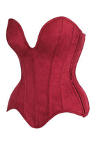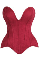 Daisy Steel Boned Red Suede Deep Plunge Overbust Corset Top