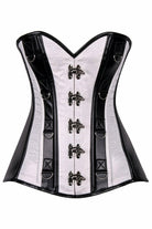 Daisy White Brocade & Faux Leather Steel Boned Corset TD-343