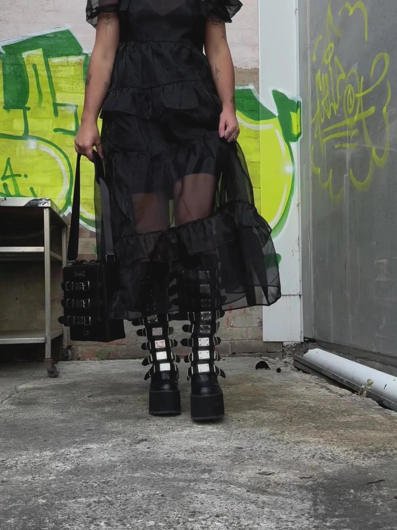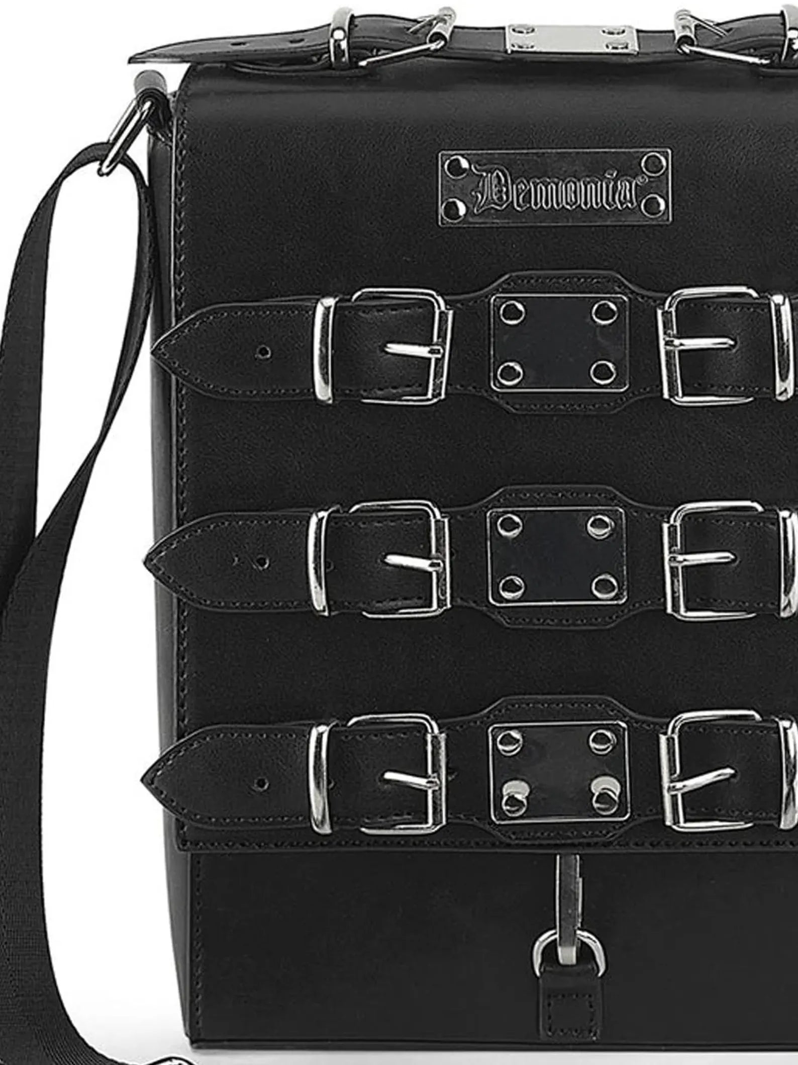 Meet Demonia's Triple Threat Crossbody Bag - this bag features three bold buckle straps across the front and a Demonia badge, making it the perfect accessory for your edgy and rebellious style. With plenty of room for all your essentials, this bag is a triple threat of functionality, style, and attitude!