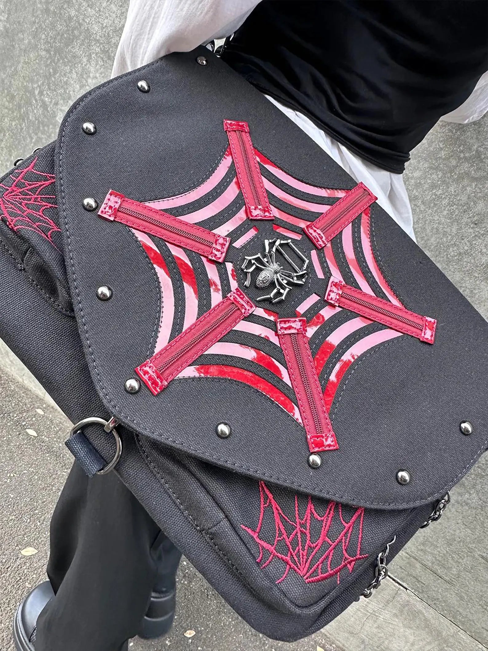 Demonia HB-662 Canvas Messenger Bag W/Spider Design