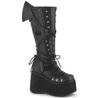Knee High Boot Featuring Ornamental D-Ring Lacing, Collar & Cone Spike Stud Details Along with Front Gusset Stretch Detail in Front, Full Length Inner Side Metal Zip Closure
