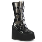 5 1/2" (140mm) Platform Mid-Calf Boot Featuring 5 Buckle Straps w/ Heart Shaped Metal Plates at Center, Back Metal Zip Closure