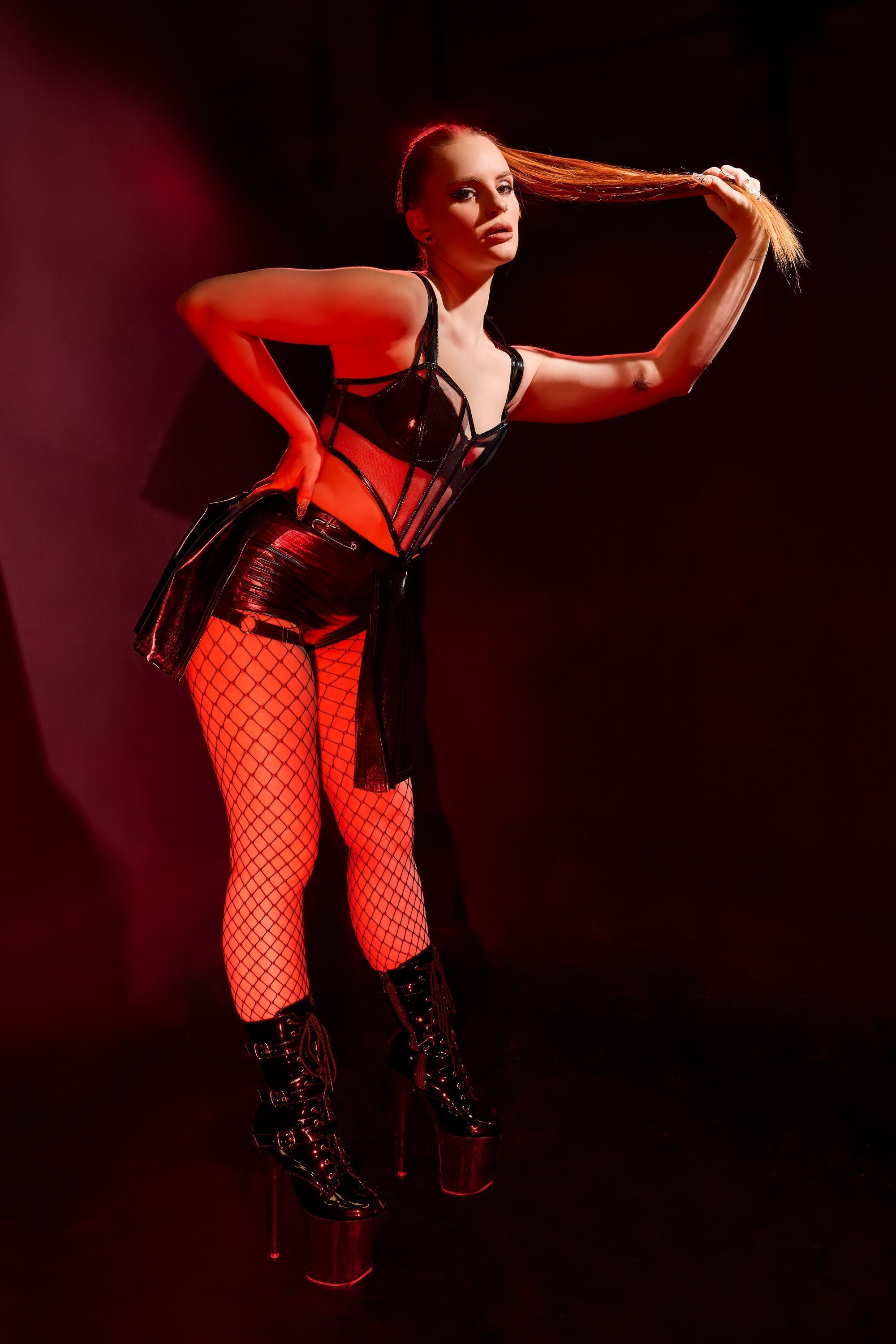 Take on daring style with the Coquette 24223 Darque Wet Look Pleated Skort Skirt Black. Featuring a bold pleated design and built-in shorts, this skirt is perfect for the fearless fashionista. The adjustable strap and kilt pin detail add an edgy touch, while silver tone hardware completes the look. Don't be afraid to step out of your comfort zone with this statement piece!