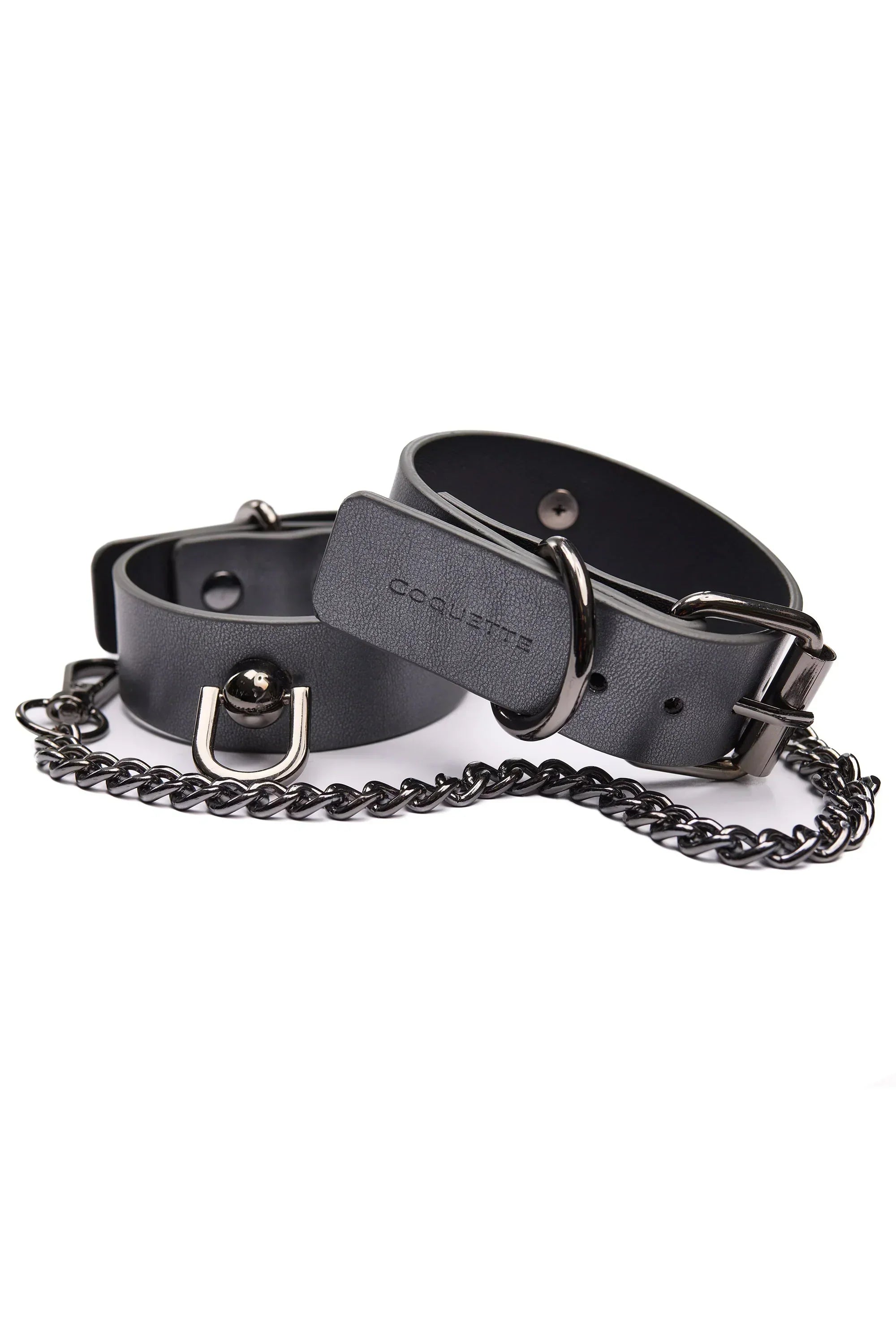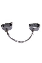 Experience ultimate luxury and sensuality with our Gunmetal Glam Handcuffs. Made from adjustable 1" (2.54cm) wide cuffs, these cuffs feature a removable chain and buckle closure for added flexibility and excitement. Embossed with the logo, the total cuff length is 10 1/2" (26.7 cm) with a chain length of 8" (20.3 cm). Perfect for wrist sizes up to 6 1/2" (16.5 cm).