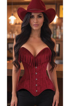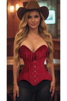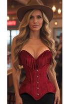 Daisy Corset Red Suede Steel Boned Overbust Corset w/Fringe