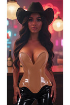 Daisy Corset Steel Boned Caramel Patent Plunge Neckline Overbust Corset