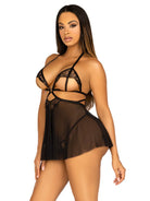 Give them something to talk about with this 2 PC open cup babydoll lingerie set by Leg Avenue. Featuring a flirty mesh nightie and matching thong panties, the eyelash lace open cup, strappy back, and heart ring accent of this naughty lingerie look is sure to get their attention.