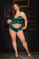 Feminine, flirty, and effortlessly chic—the Jade Bralette & Panty Set is all about delicate details and playful charm. The bralette features soft triangle cups and a graceful peplum hem, paired with adjustable satin straps for a comfortable, custom fit. The matching panty brings a touch of whimsy with its ruffled hem, creating a sweet yet seductive silhouette. Finished with elegant gold-tone hardware, this set is perfect for lounging in style or layering under your favorite outfit.