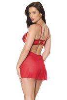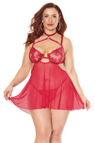 Elevate your lingerie game with the Scarlette Babydoll & G-String Set—a sultry combination of softness, shine, and seductive design. The babydoll features soft cups with underwire for gentle support, a removable neck strap, and adjustable shoulder straps to create your perfect fit. A center front keyhole and open-back cutaway design adds just the right touch of tease, while metallic wet-look trim and red-tone hardware bring bold, modern glamour. Finished with a matching adjustable G-string, this set is made for unforgettable moments.