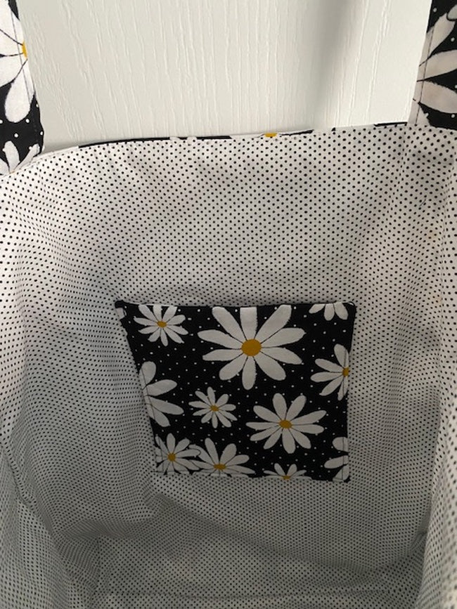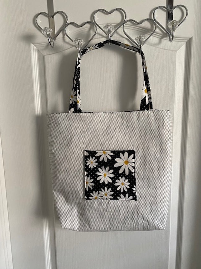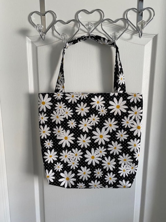 Handmade Lined Large Size Daisy Flowers Reversible Tote Bag