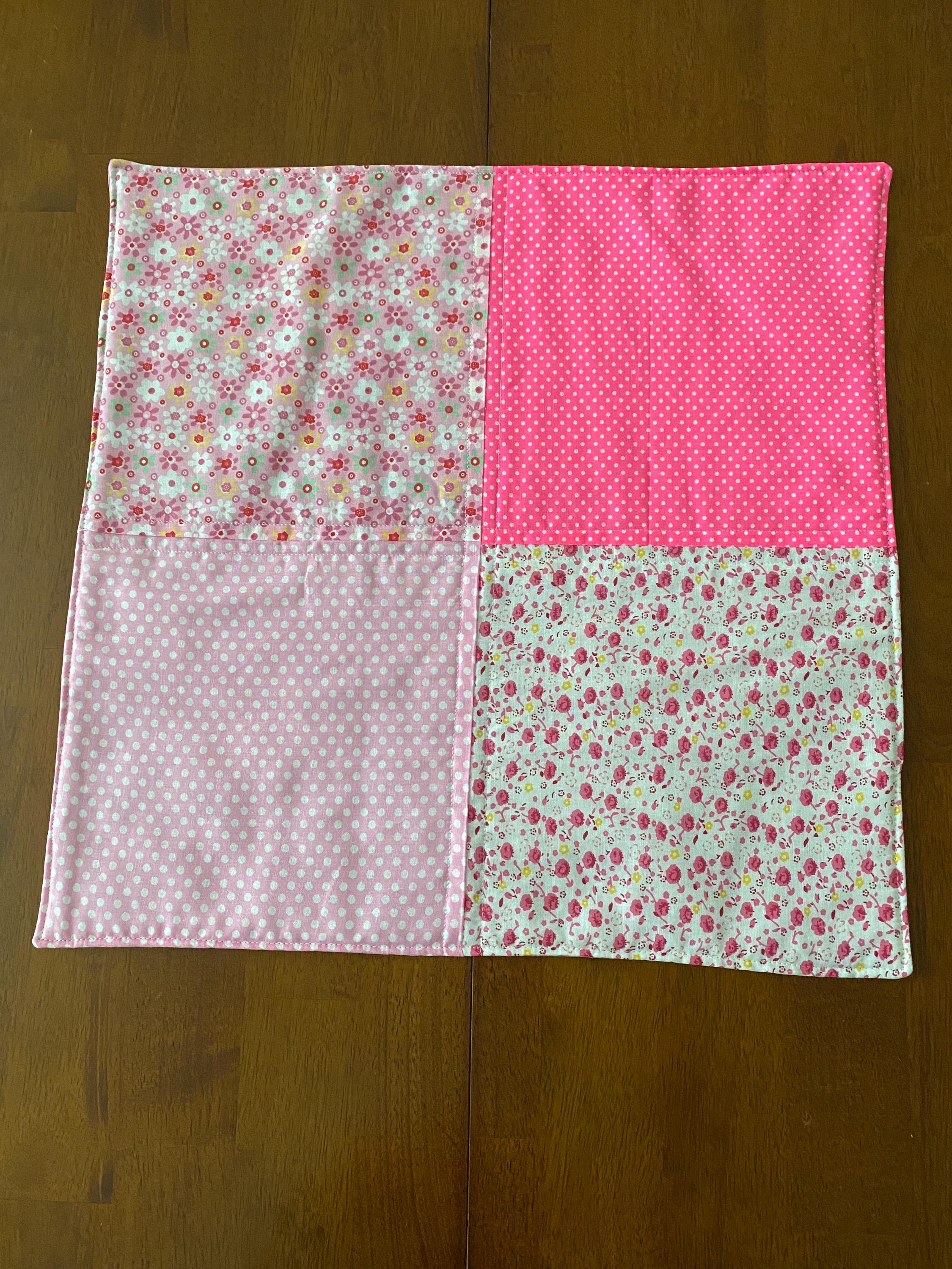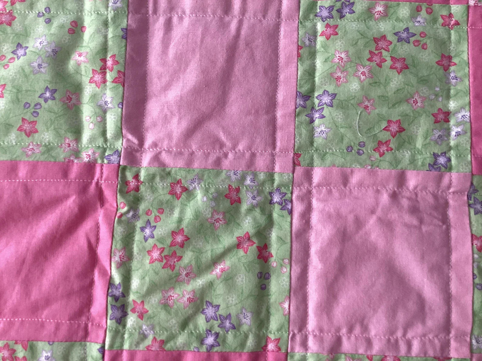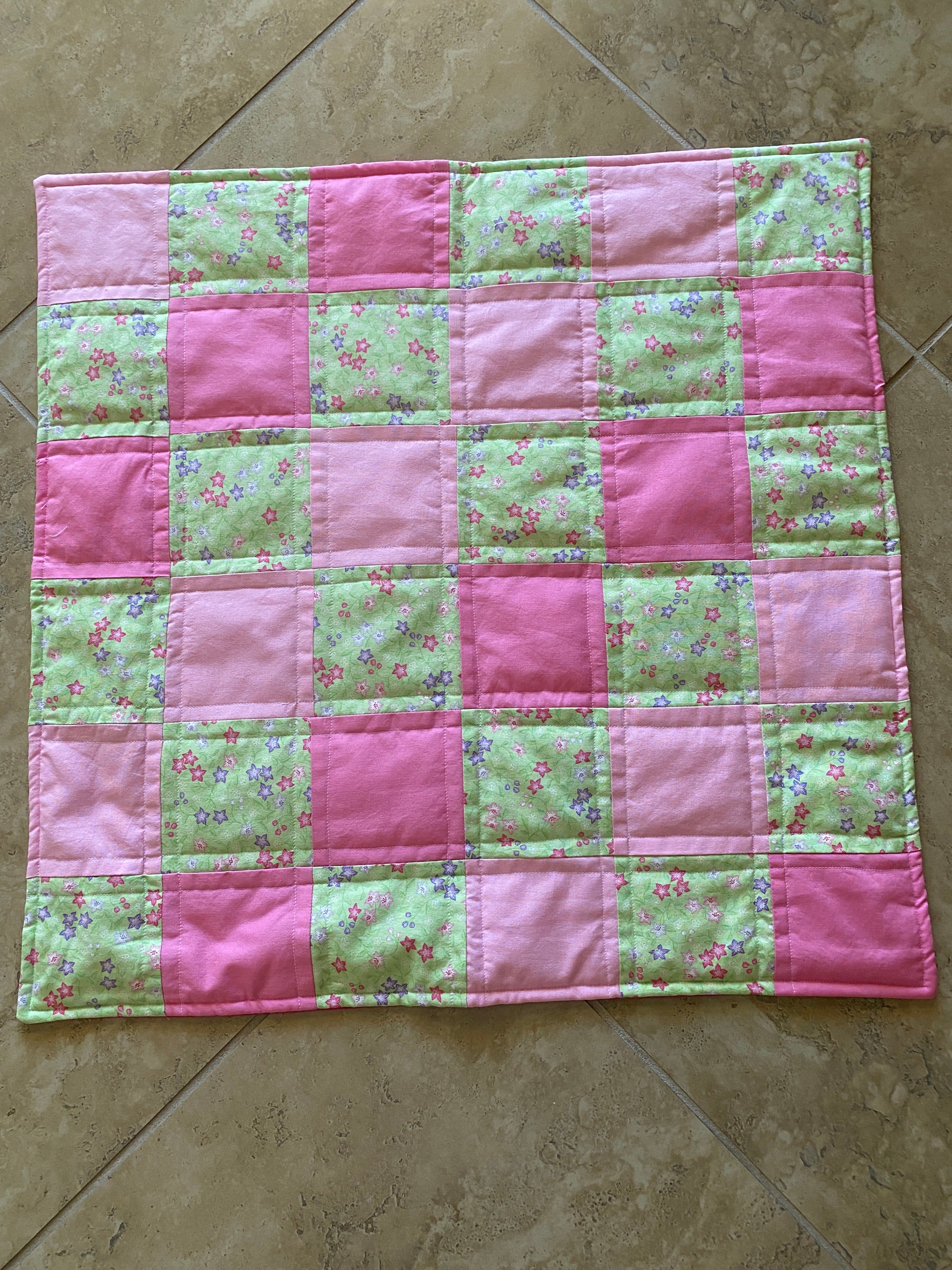 Handmade Baby Doll Quilted Blanket with Polka Dots and Flower Blocks Pink