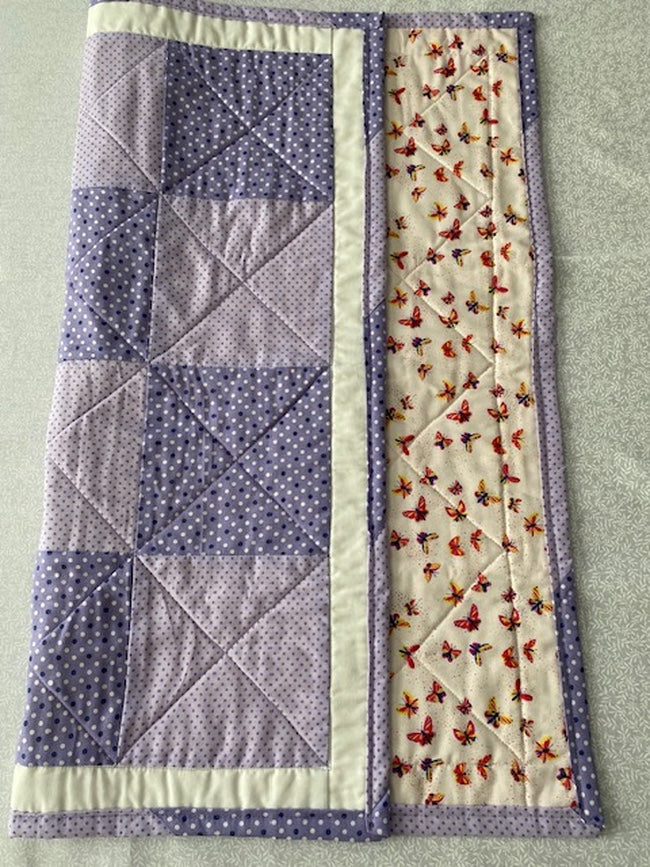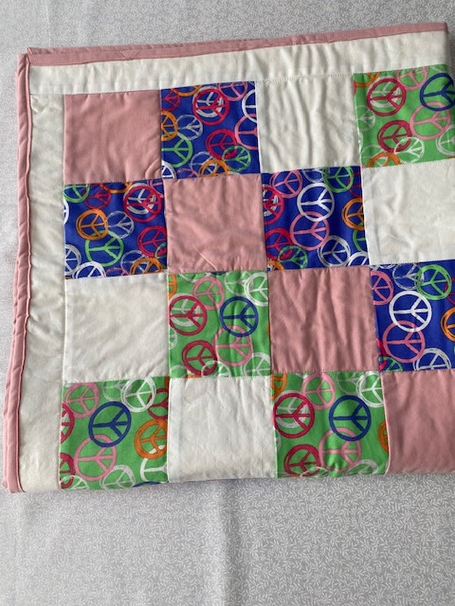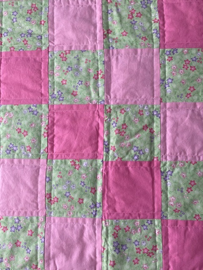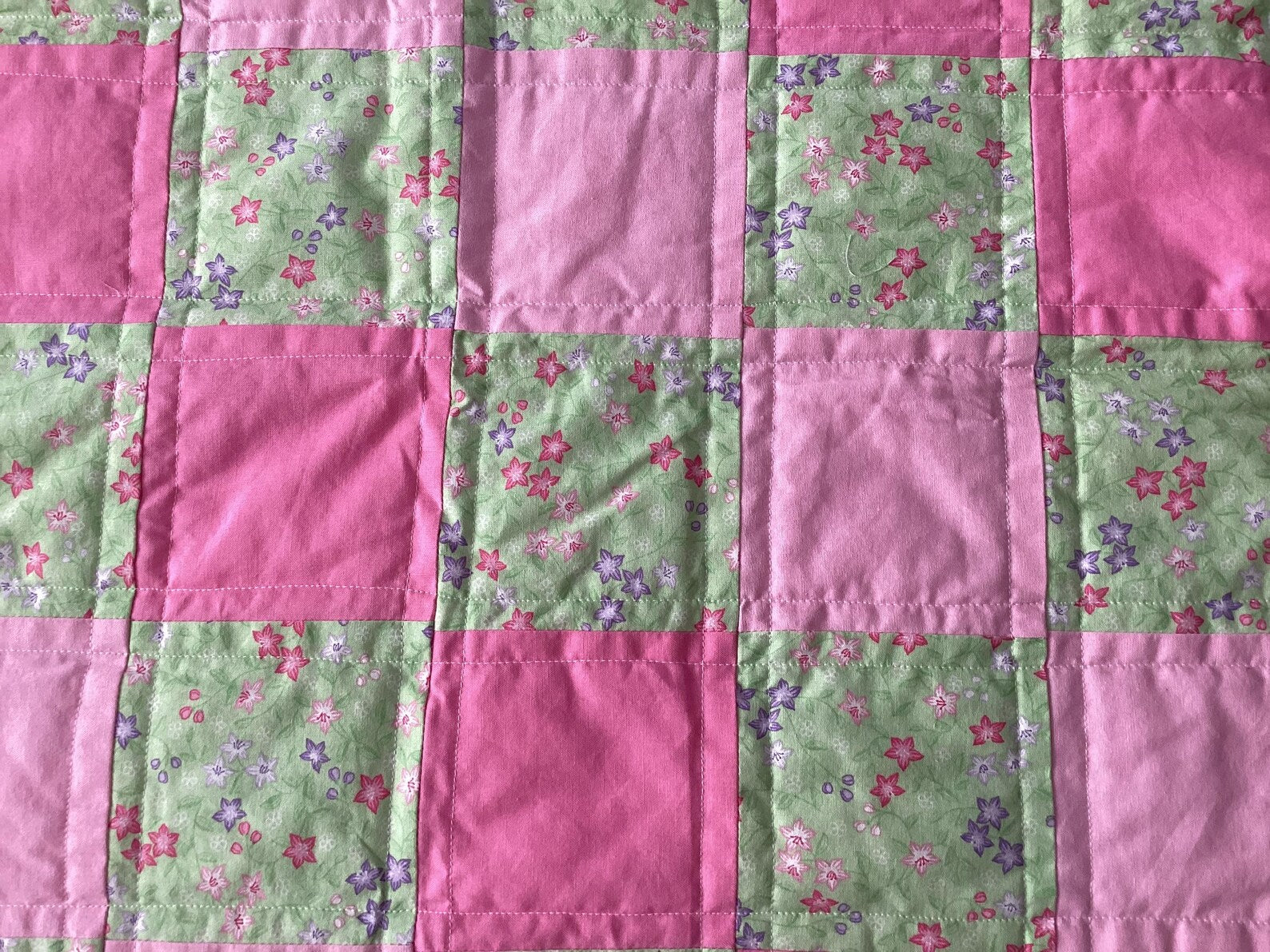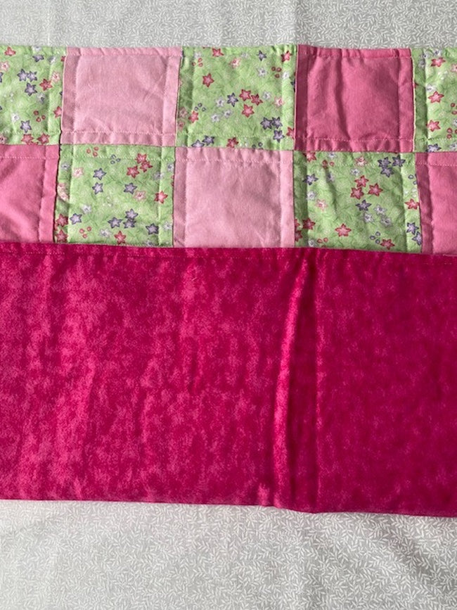 Handmade Baby Doll Quilted Blanket with Polka Dots and Flower Blocks Pink