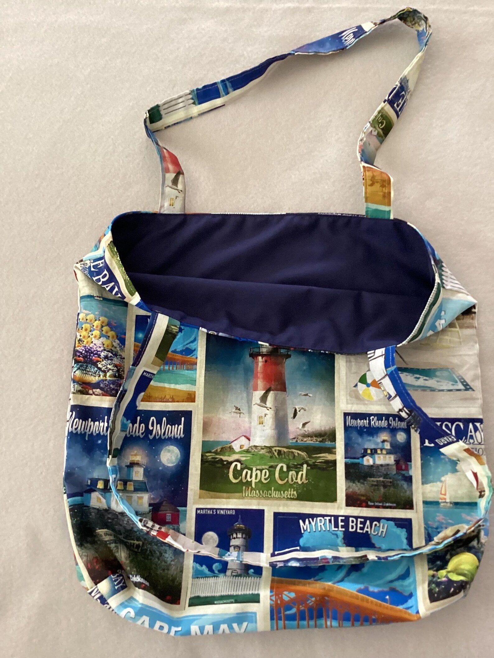 Handmade Reversible Lined Medium Size Tote Bag of Lighthouses