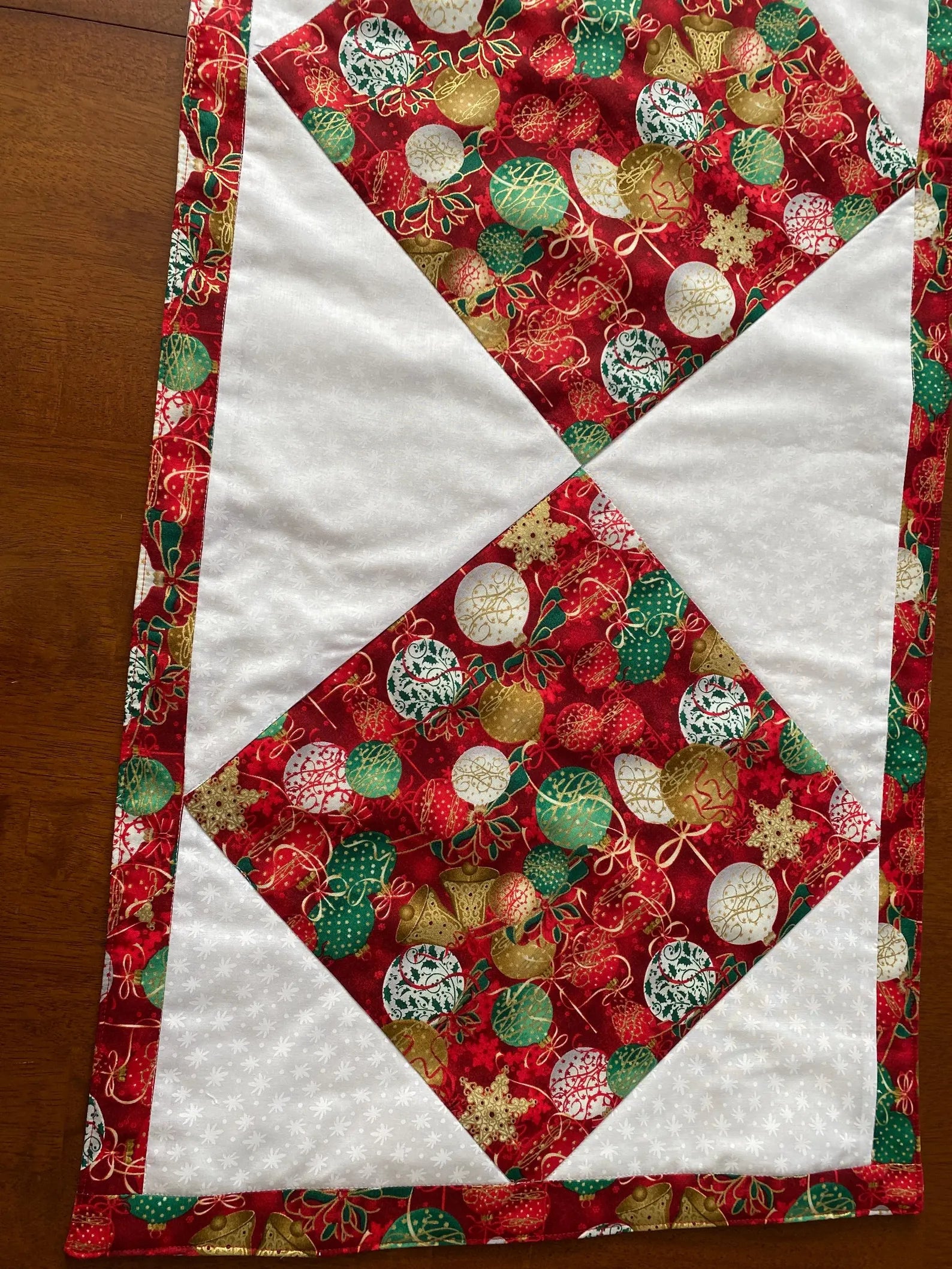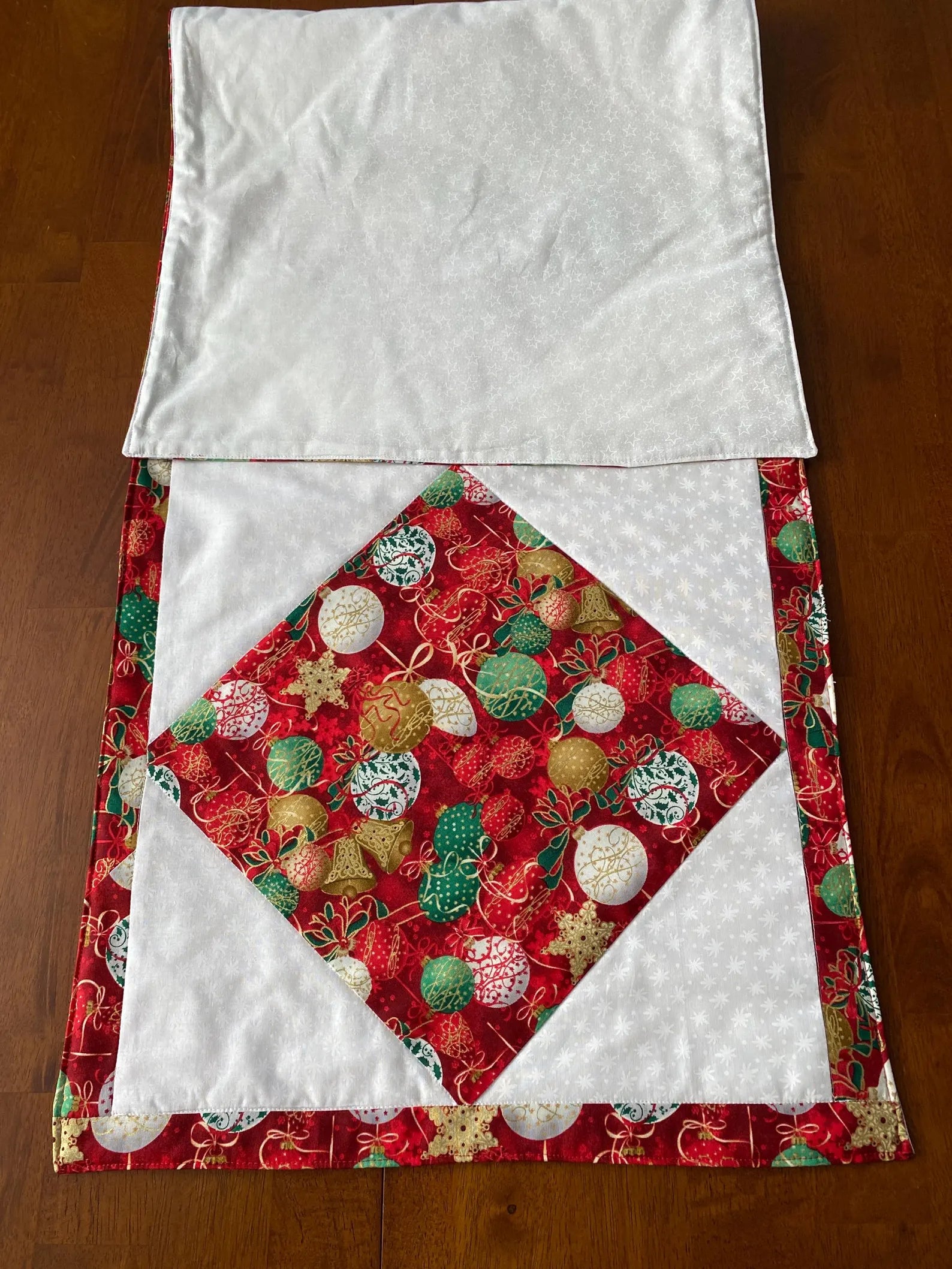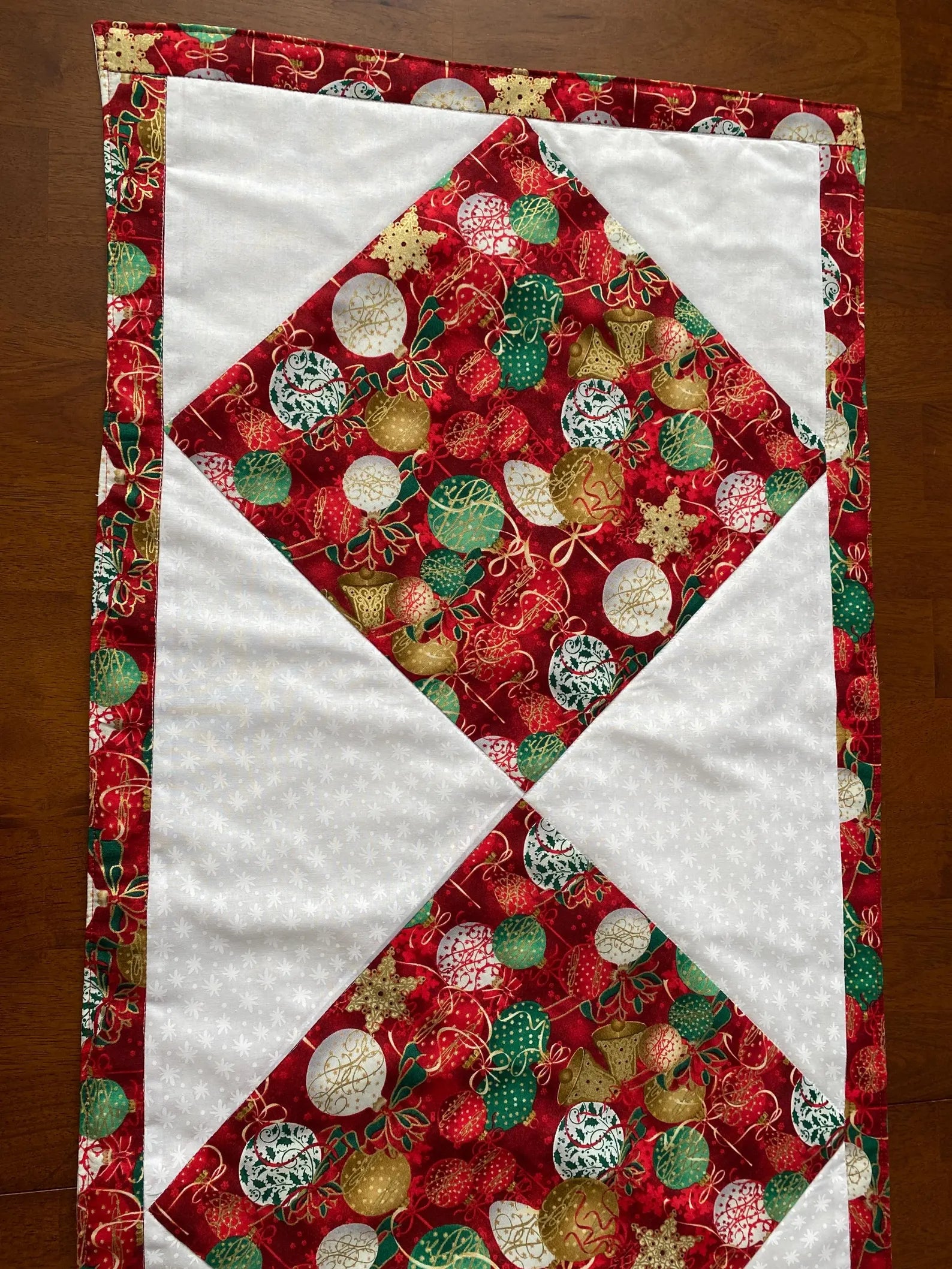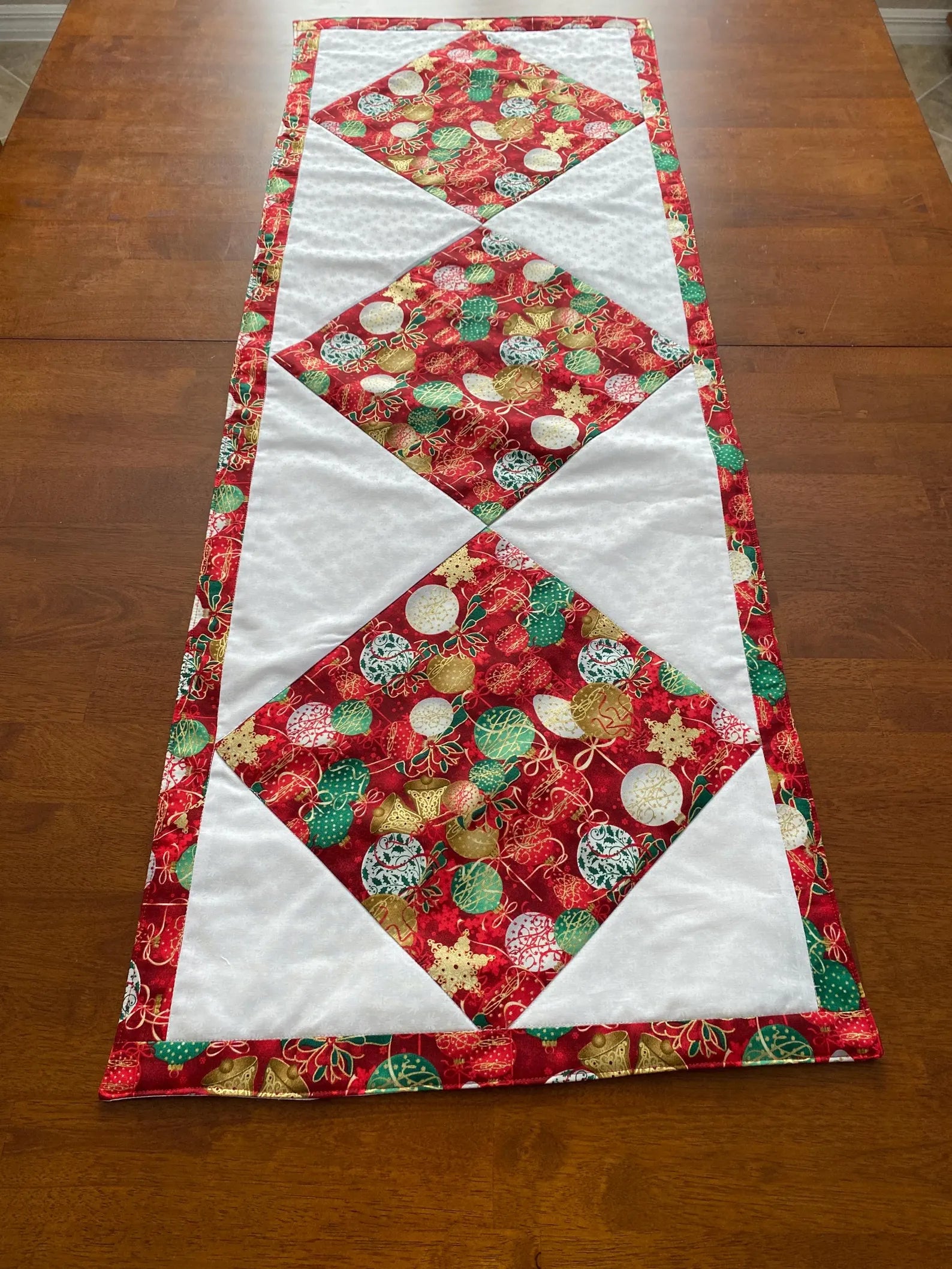 Handmade XMAS Holiday Table Runner Old Fashioned Ornaments