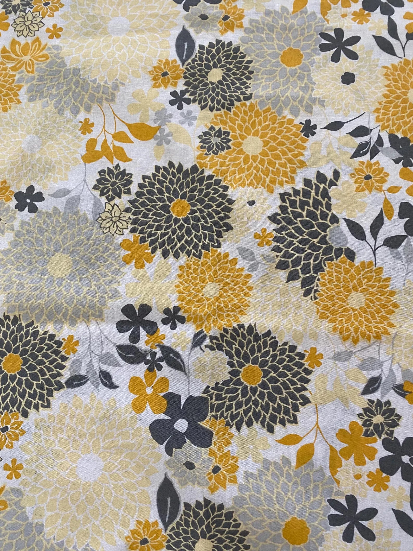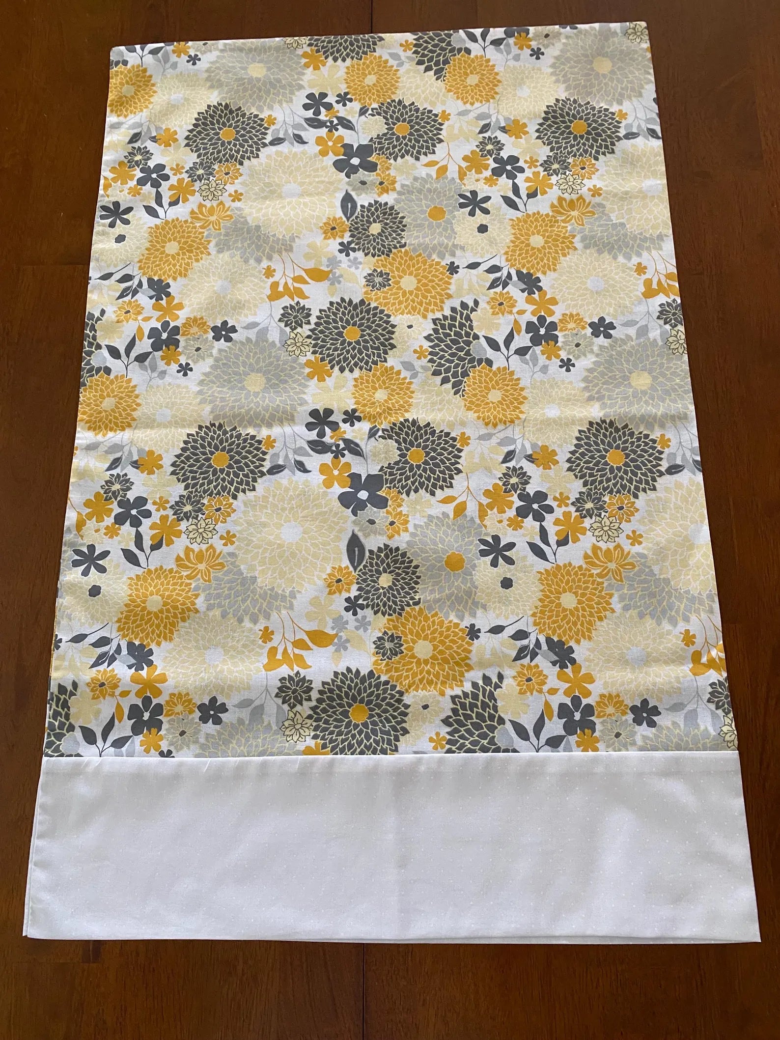 Handmade Standard/Queen Size Pillowcase with Yellow and Grey Flowers