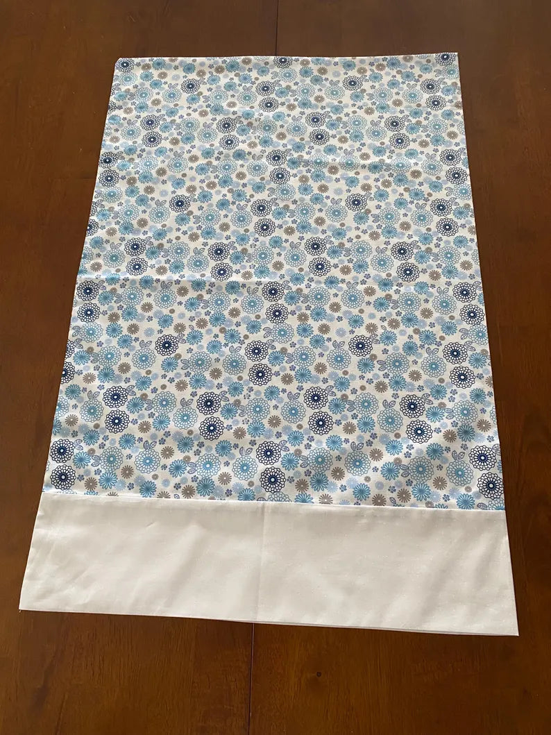Handmade Standard/Queen Size Pillowcase with Blue and Brown Flowers
