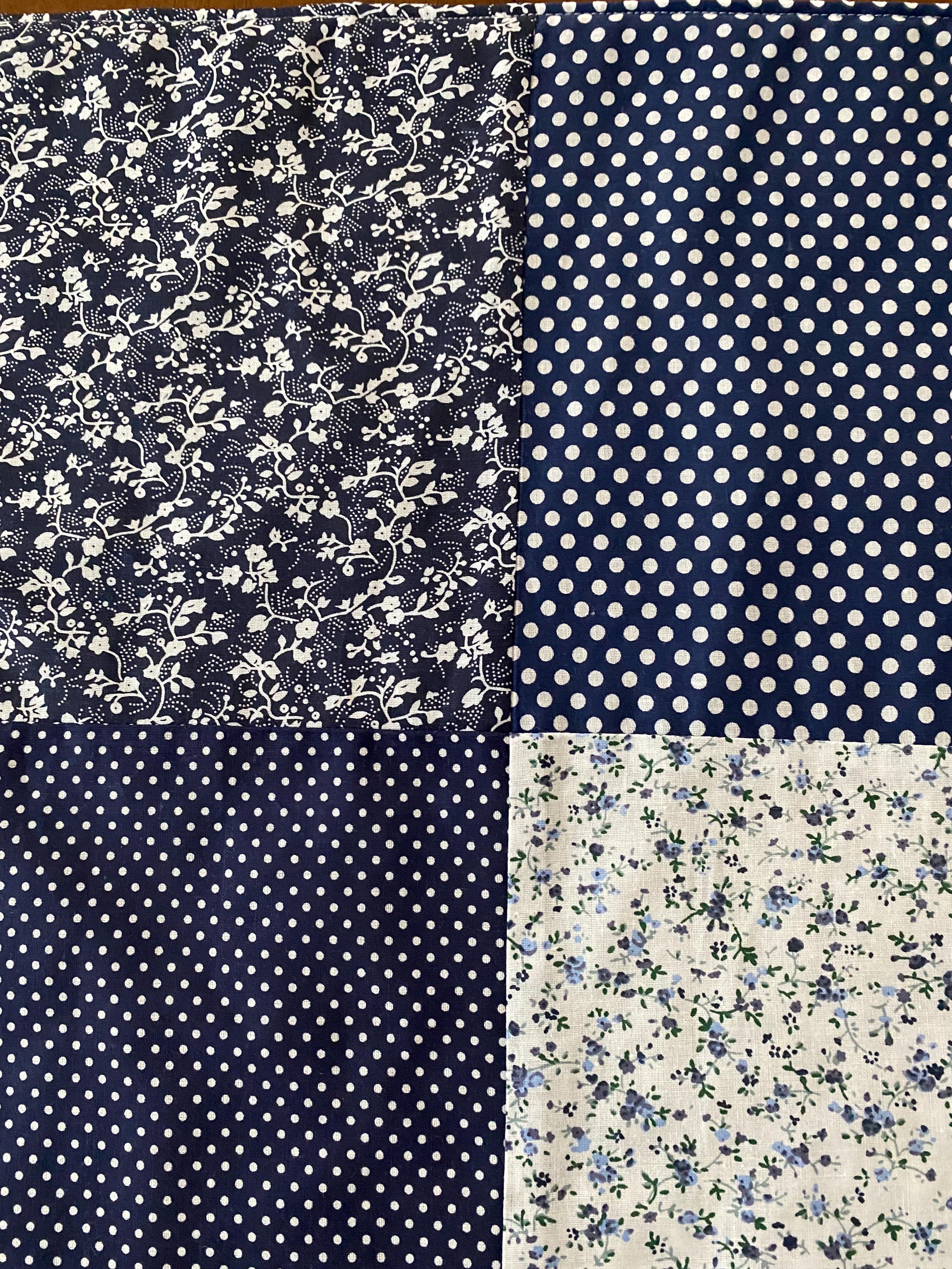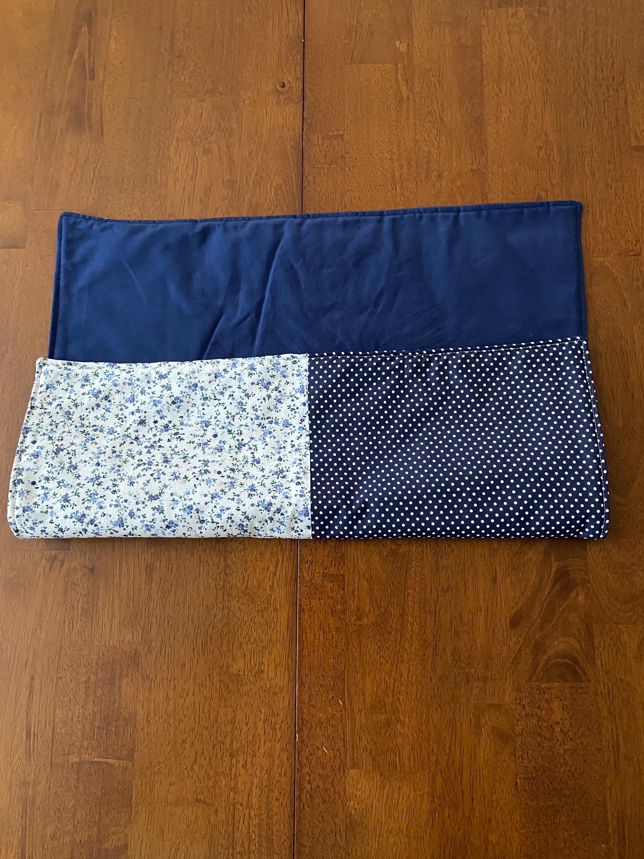 Handmade Baby Doll Quilted Blanket with Polka Dots and Flower Blocks Navy