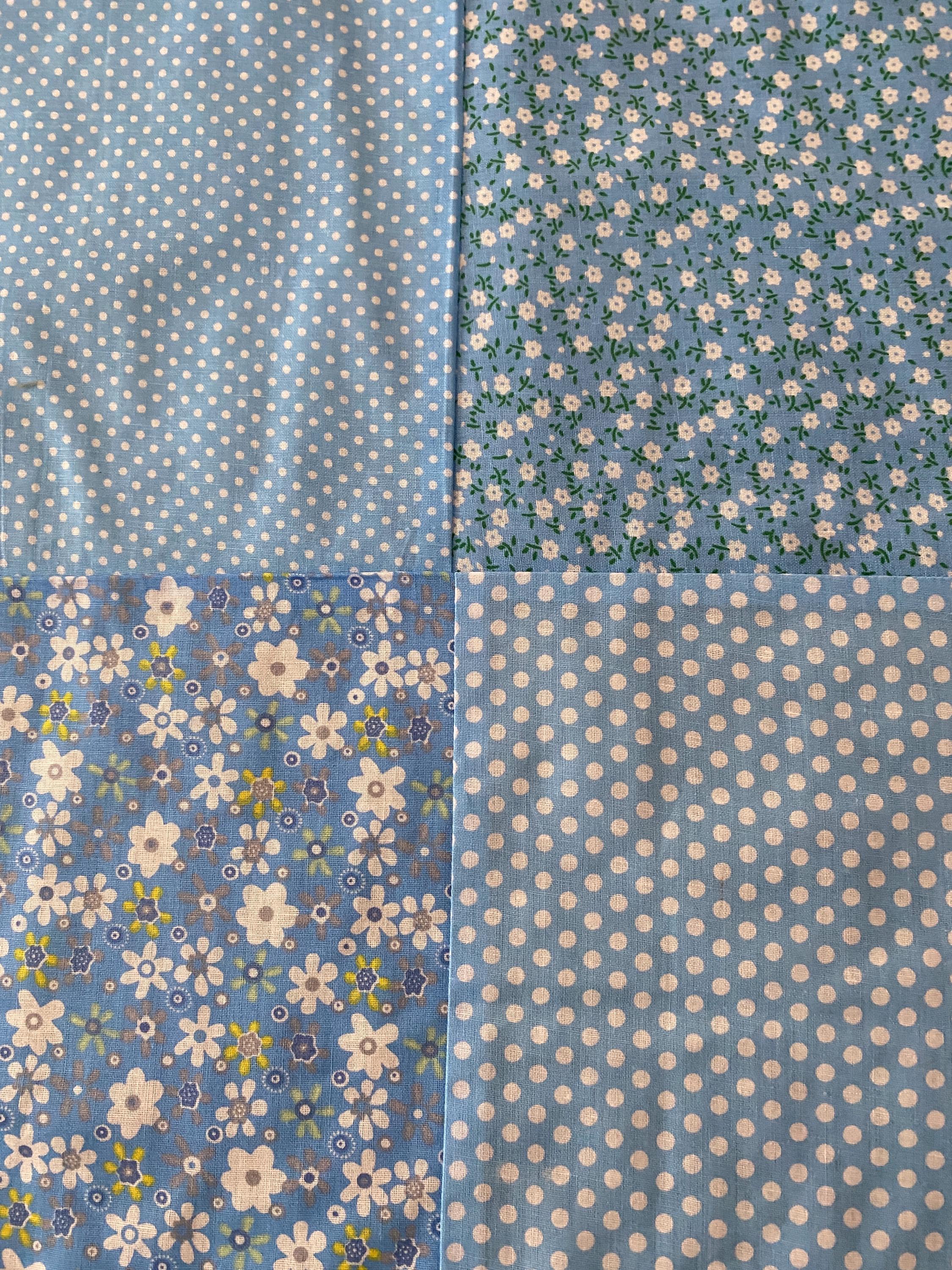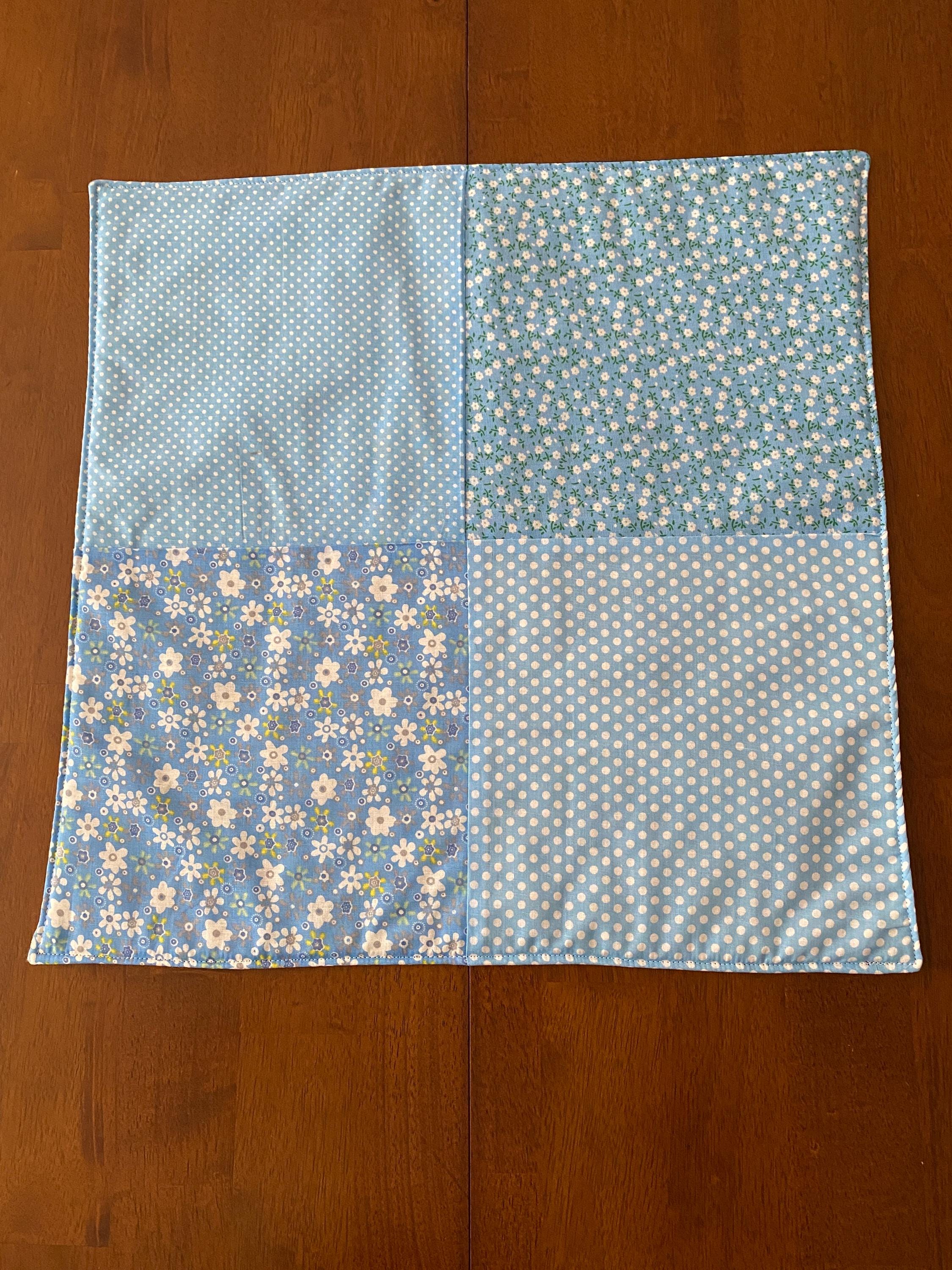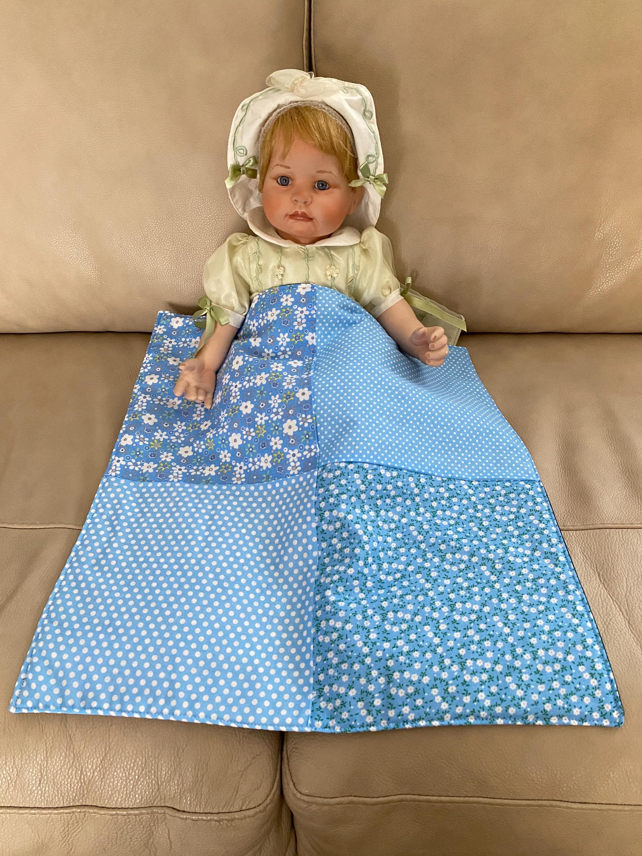 Handmade Baby Doll Quilted Blanket with Polka Dots and Flower Blocks Light Blue