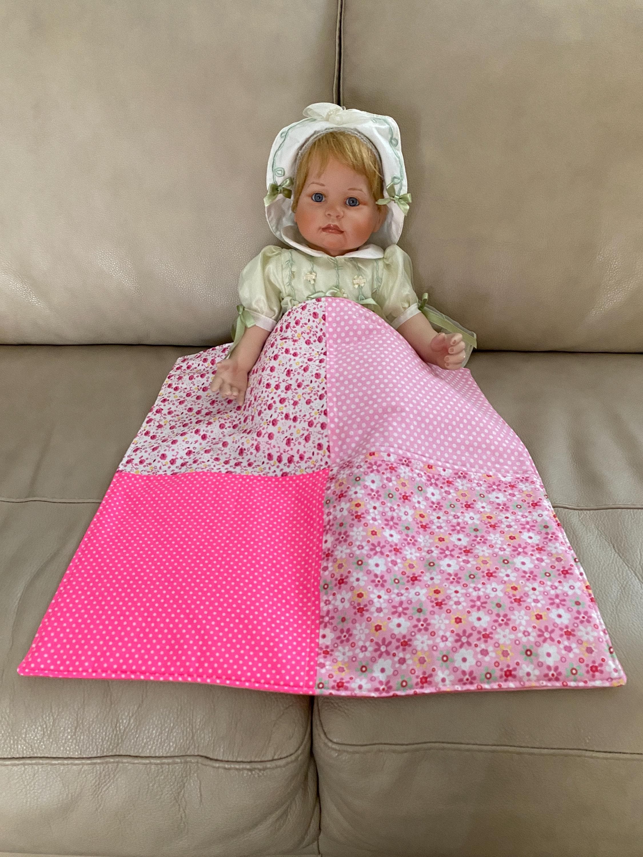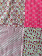 Handmade Baby Doll Quilted Blanket with Polka Dots and Flower Blocks Pink