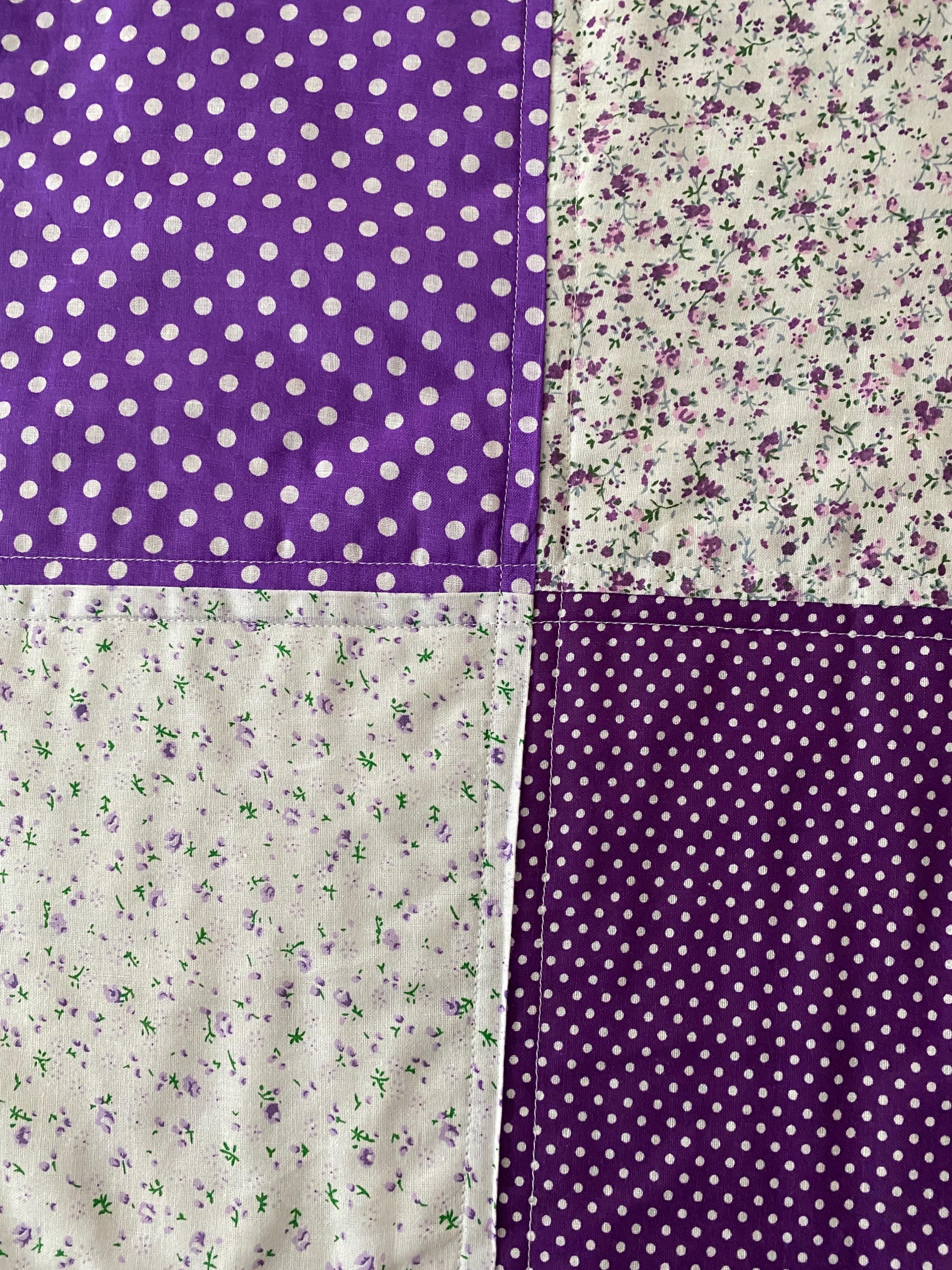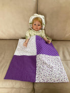 Handmade Baby Doll Quilted Blanket with Polka Dots and Flower Blocks Purple