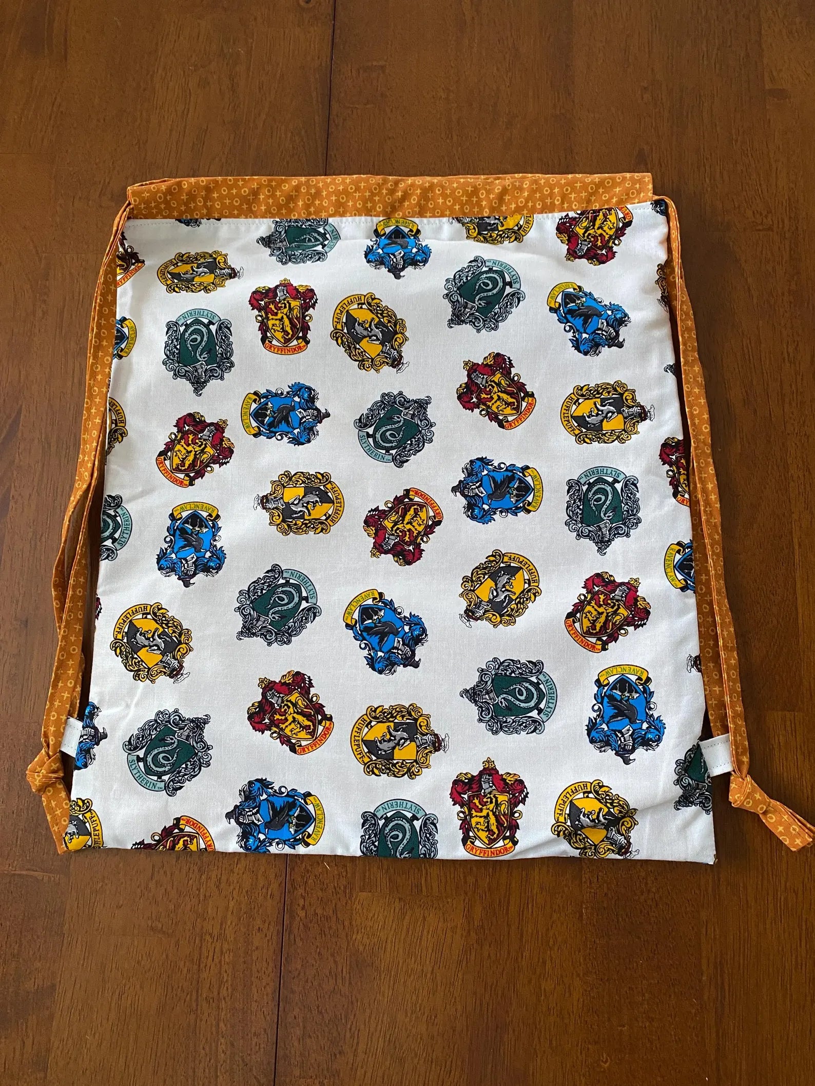 Handmade Lined Child Harry Potter Backpack With Draw Straps Brown Lining 16" x 14".