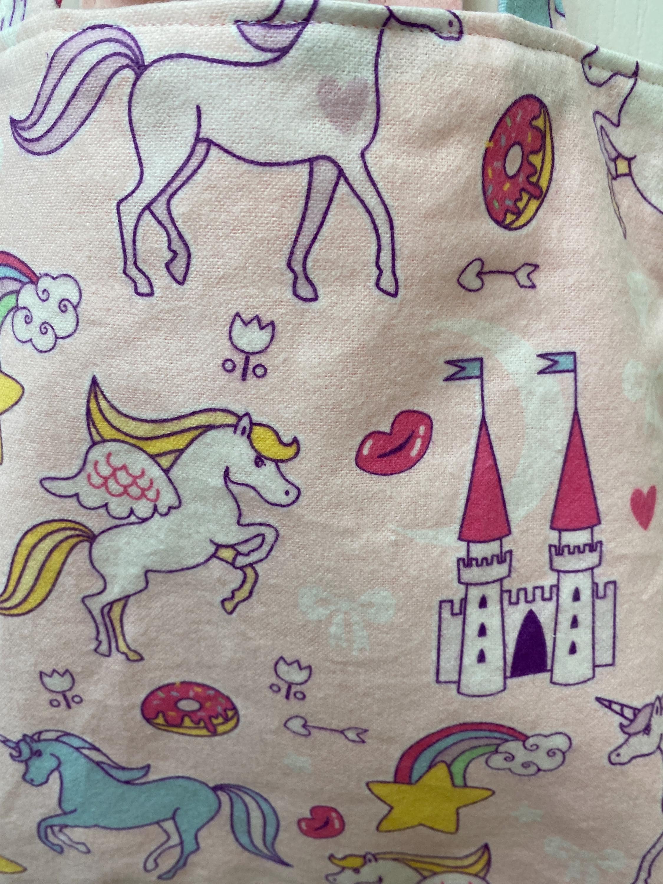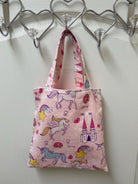 Handmade Lined Child Unicorns Reversible Tote Bag Lt Lavender Lining.