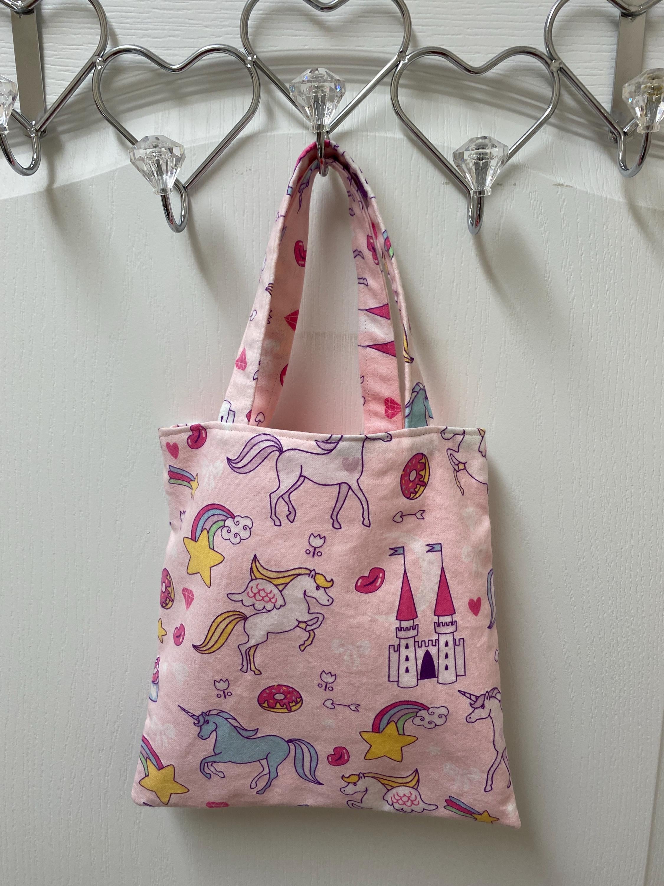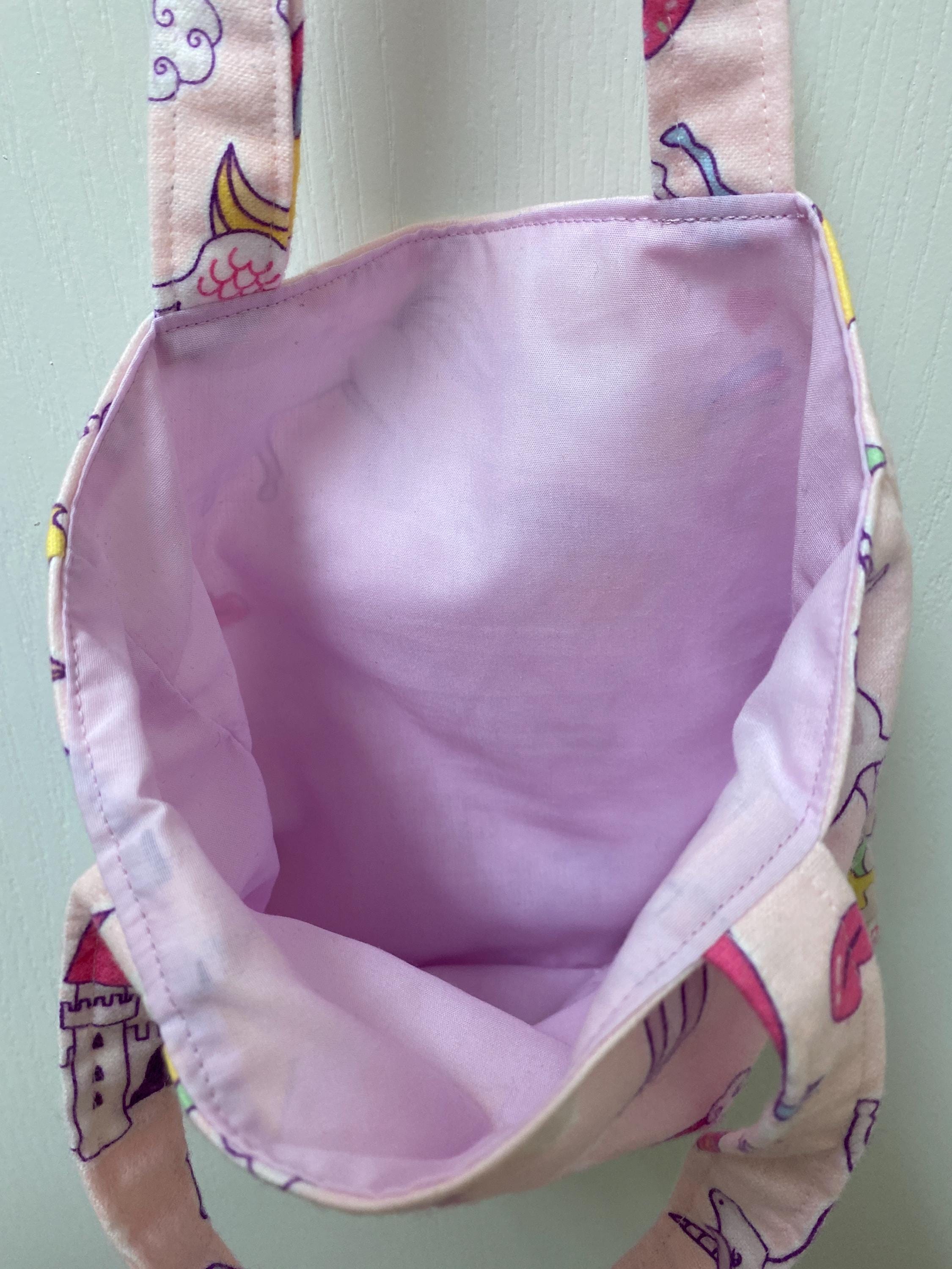 Handmade Lined Child Unicorns Reversible Tote Bag Lt Lavender Lining