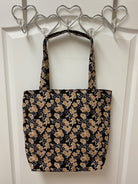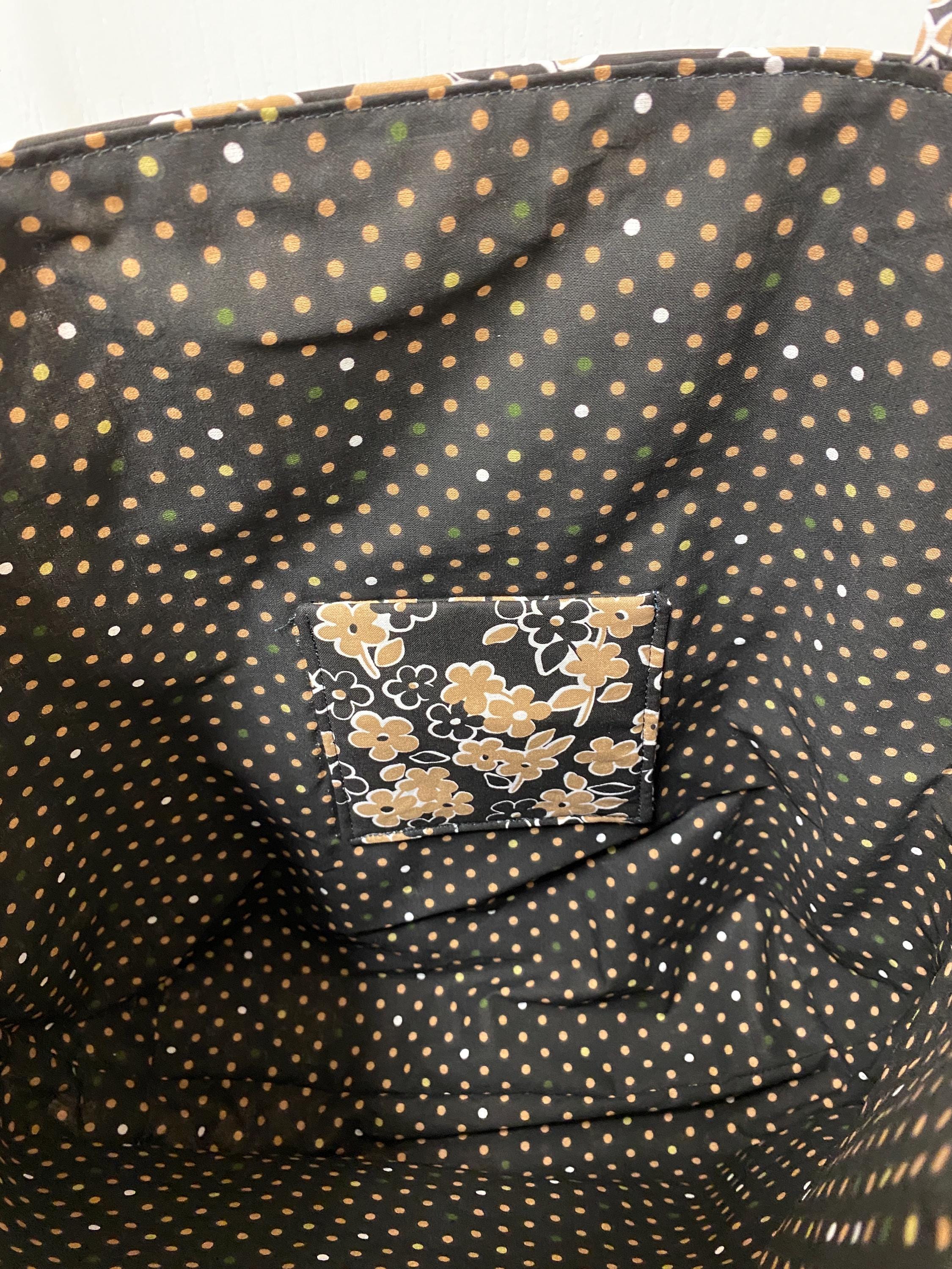 Handmade Lined Large Size Black and Gold Flowers Reversible Tote Bag with Stabilizer with an Inside Pocket are perfect to carry around all your favorite things!