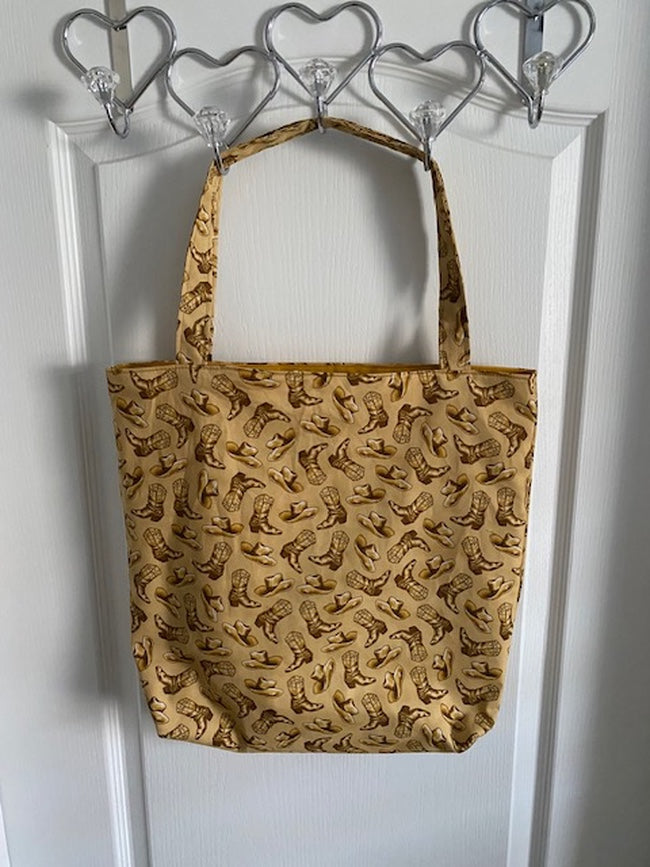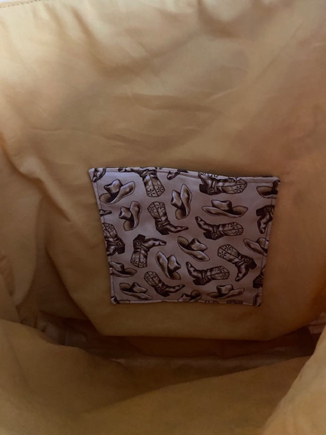 Handmade Lined Large Size Cowboy Boots & Hats Reversible Bag with Stabilizer with an Inside Pocket are perfect to carry around all your favorite things!