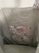 Handmade in a smoke free, pet free home. Items are made individually, and slight variations or imperfections are to be expected with any handmade item and the fabric design placement may vary slightly as each item is handcrafted.