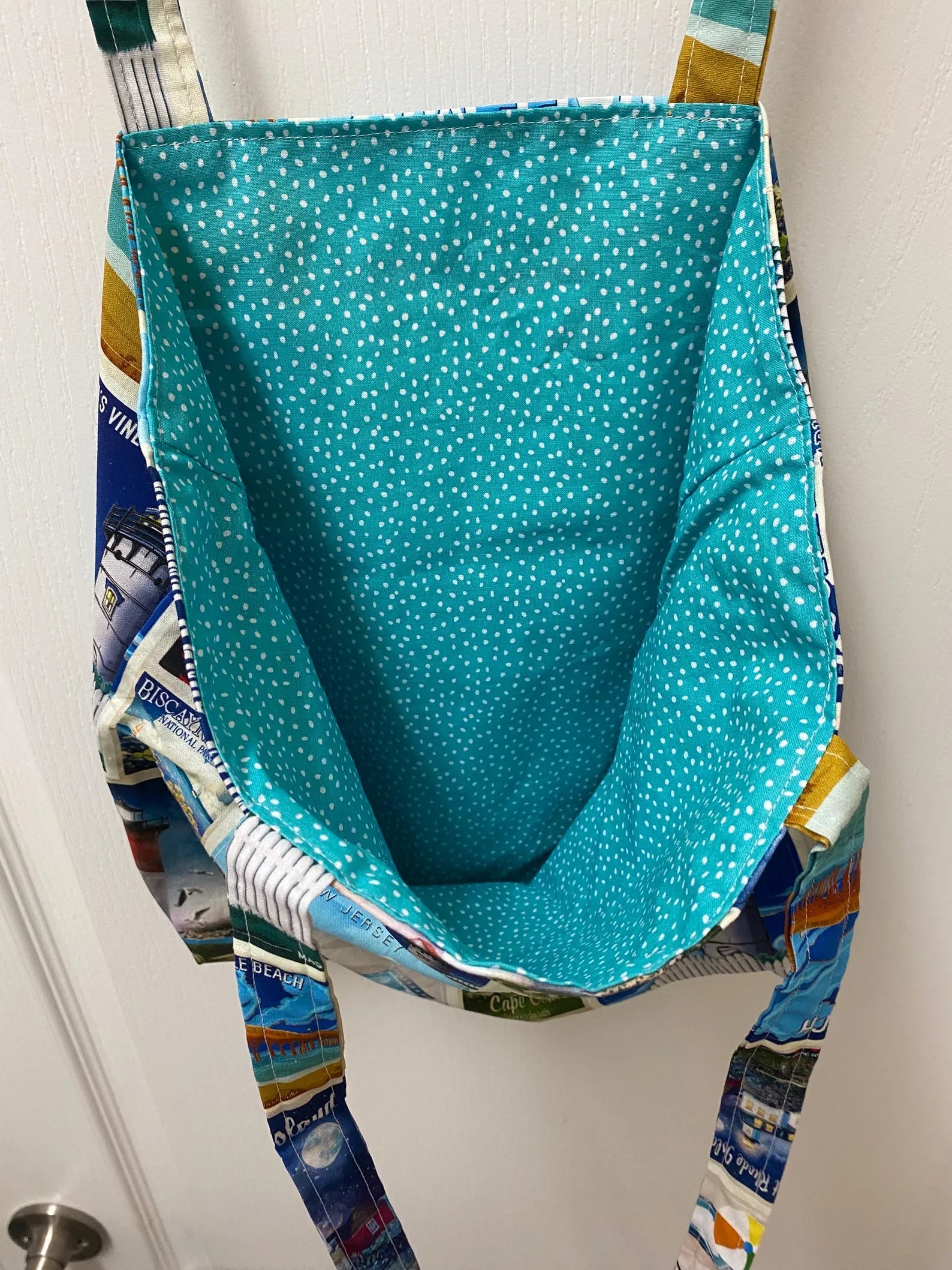 This handmade reversible large tote bag with Lighthouses with a Mint Green and White Polka Dots lining and are perfect to carry around all your favorite things!