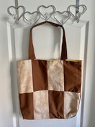 Handmade Reversible Lined Large Size Tote Bag with Brown Blocks