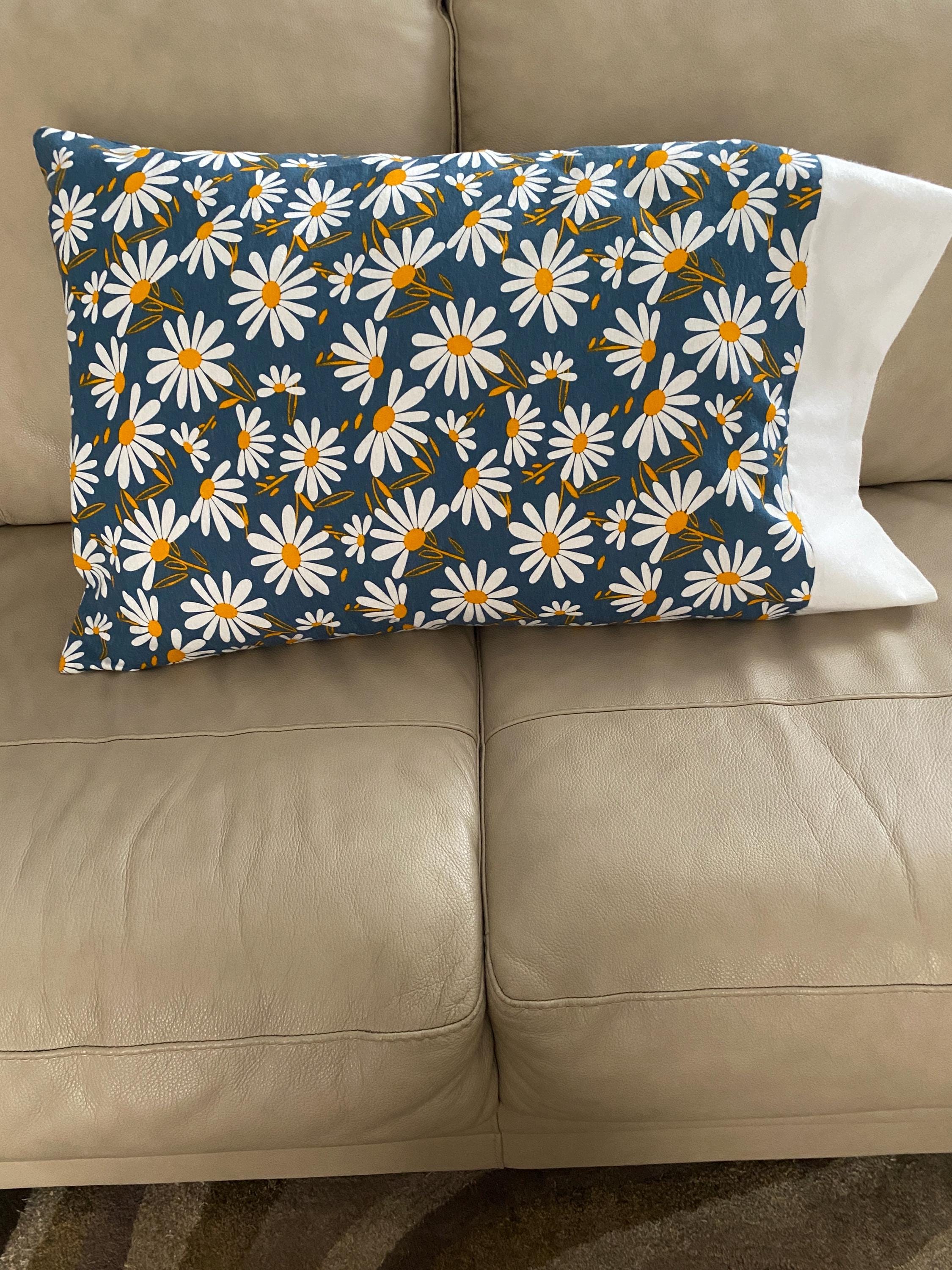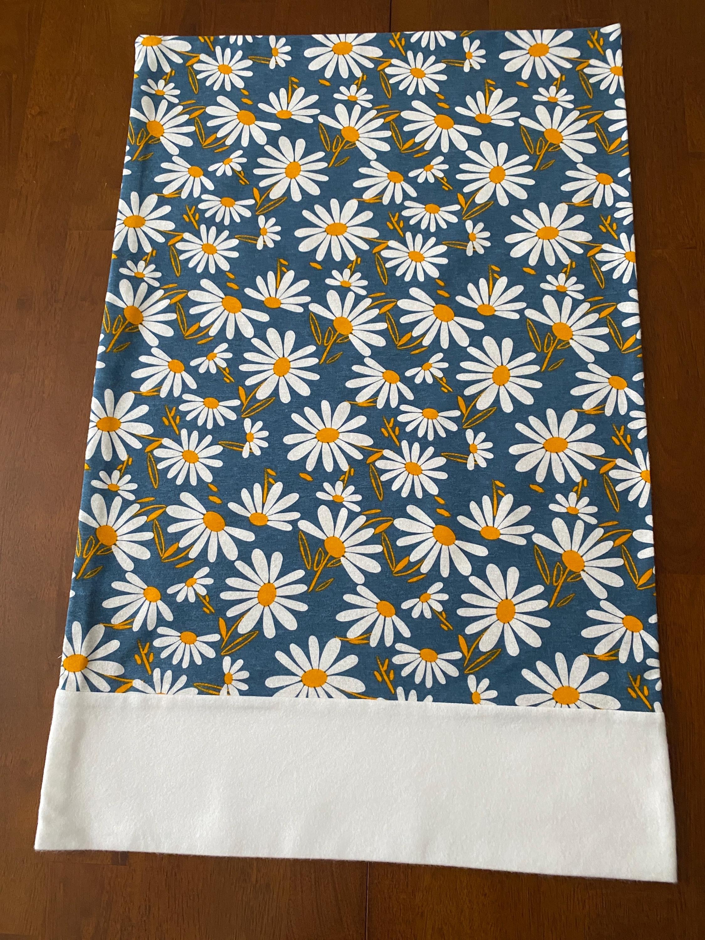 Handmade Standard/Queen Size Flannel Pillowcase Daisies On Blue