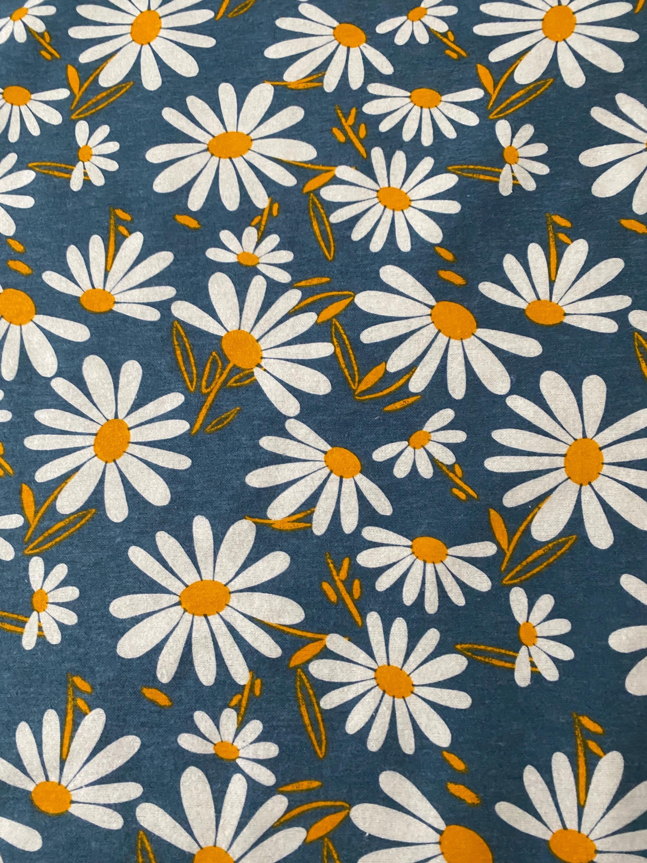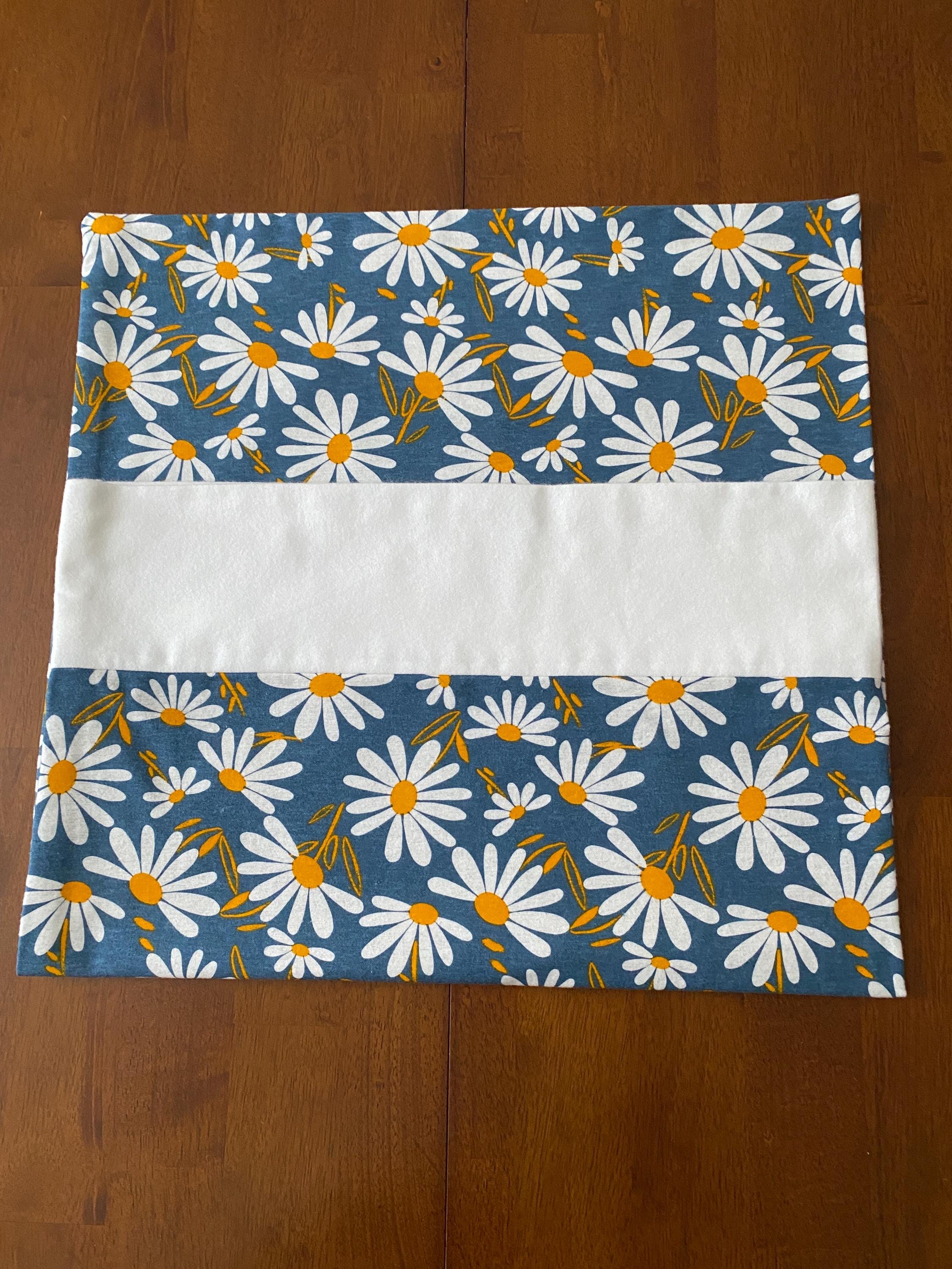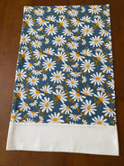 Handmade Standard/Queen Size Flannel Pillowcase Daisies On Blue.