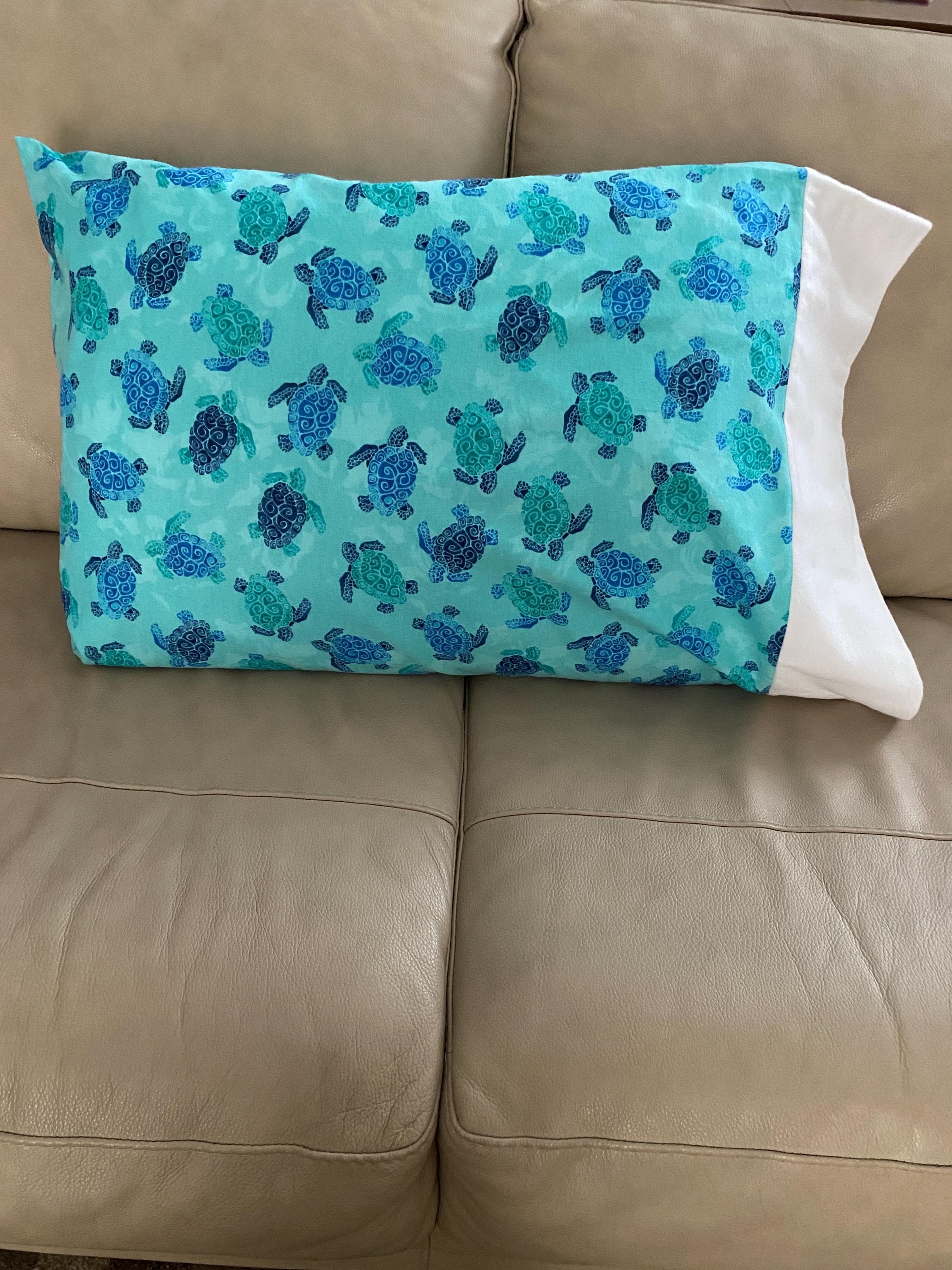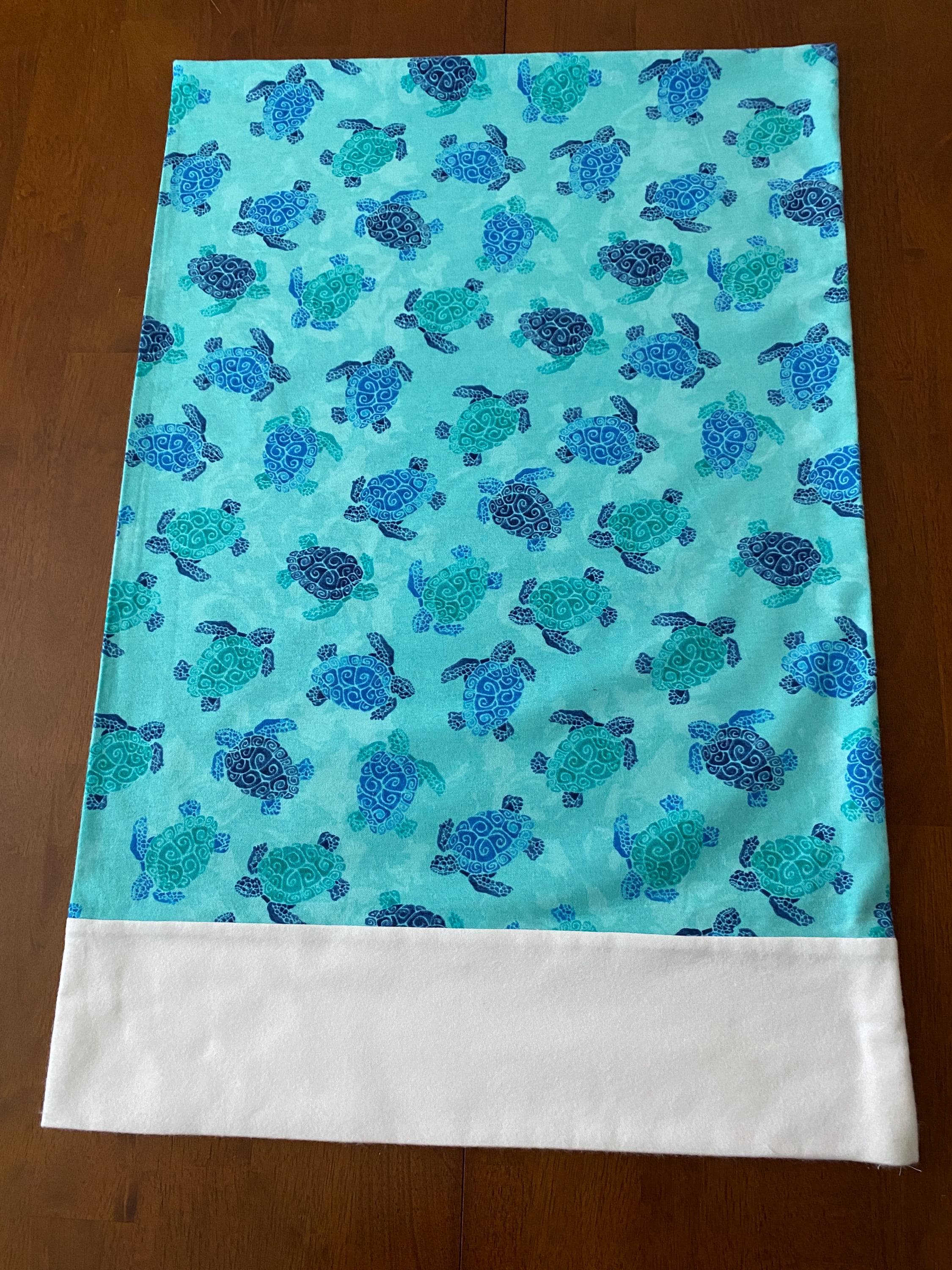 Handmade Standard/Queen Size Flannel Pillowcase Swimming Turtles.