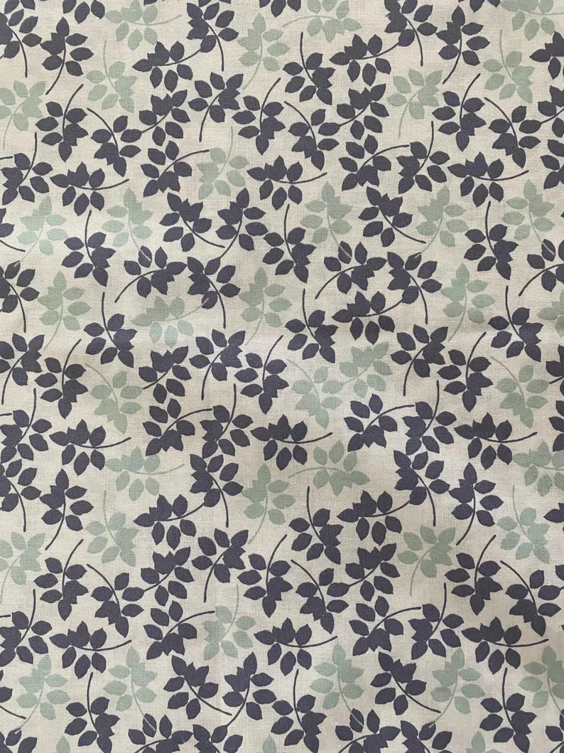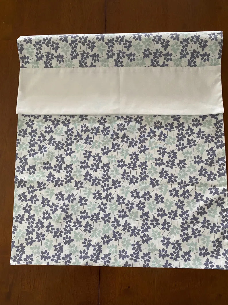 Handmade Standard/Queen Size Pillowcase with Grey and Green Leaves