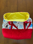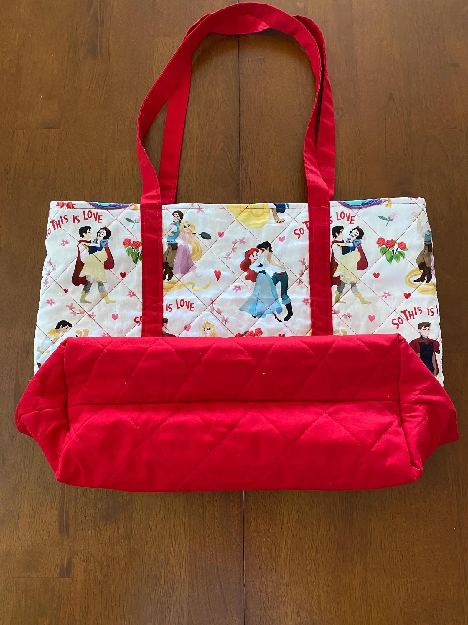 Handmade Lined Oversize Quilted Princess & The Prince Tote Bag with Yellow fabric lining are perfect to carry around all your favorite things!