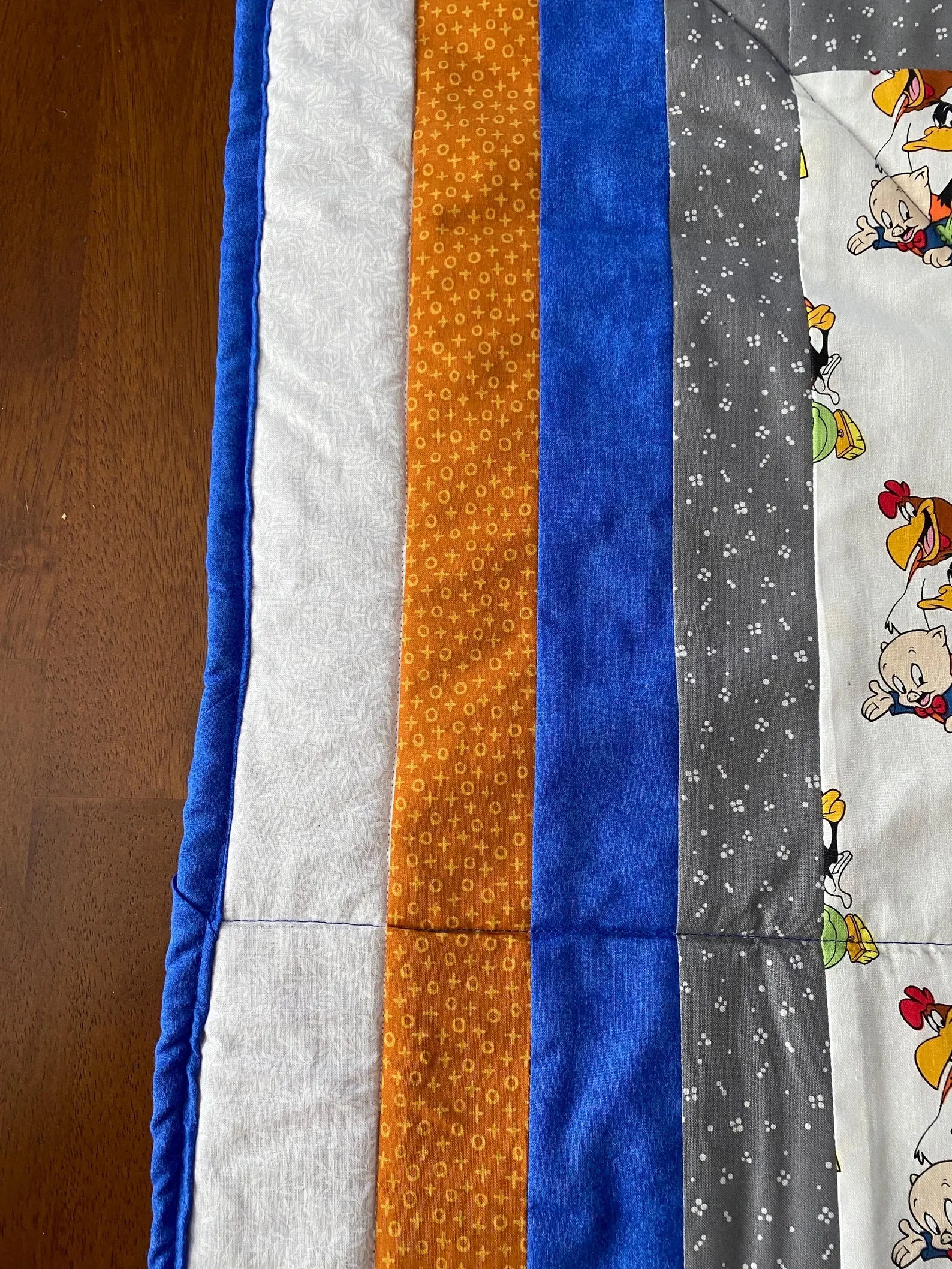 This cute 35”x 38” handmade Toddler Looney Tunes quilt. A great birthday gift. Warm Company batting, then quilted the three layers.