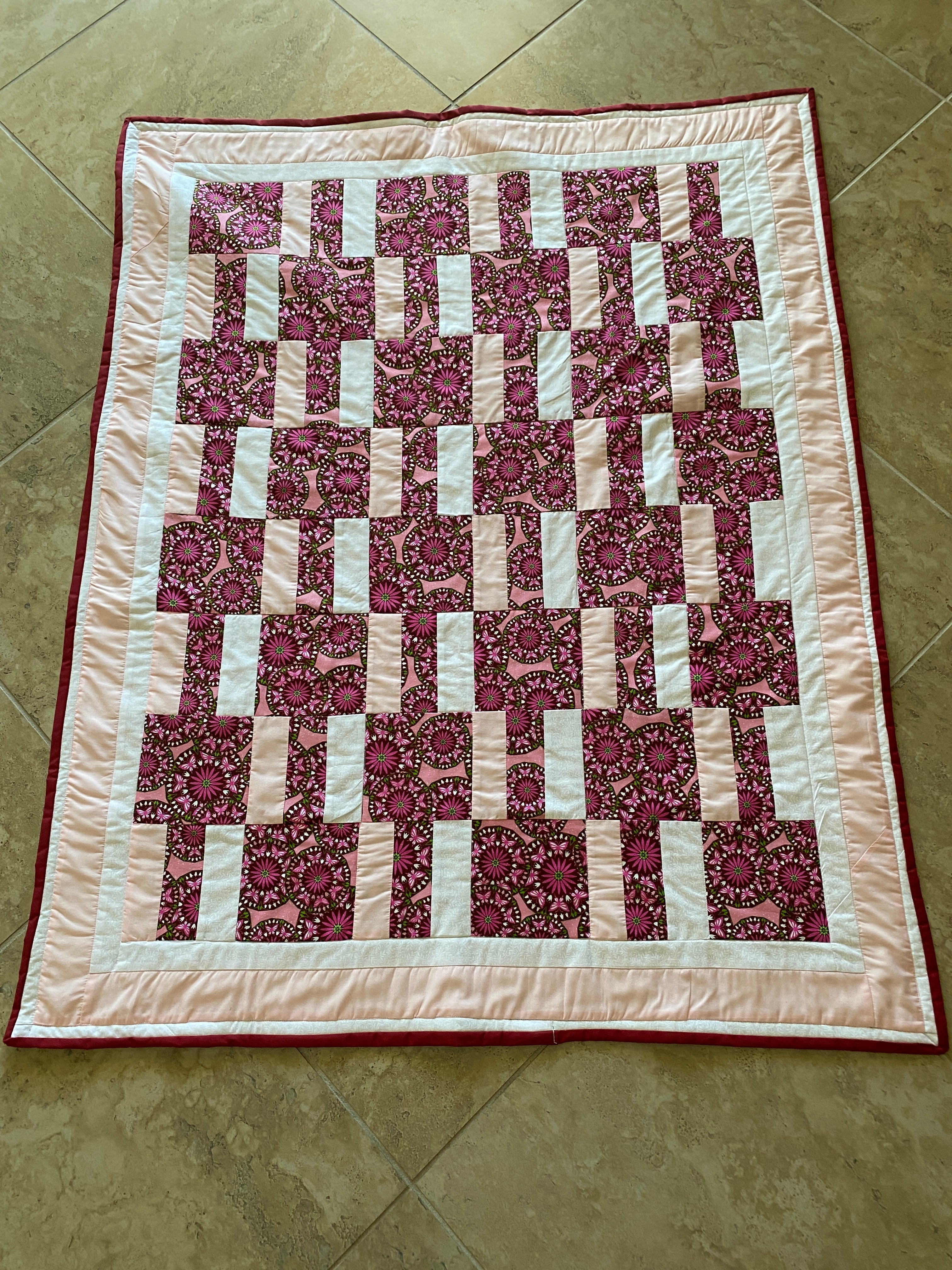 Pink Flowers and Butterfly's Lap Quilt