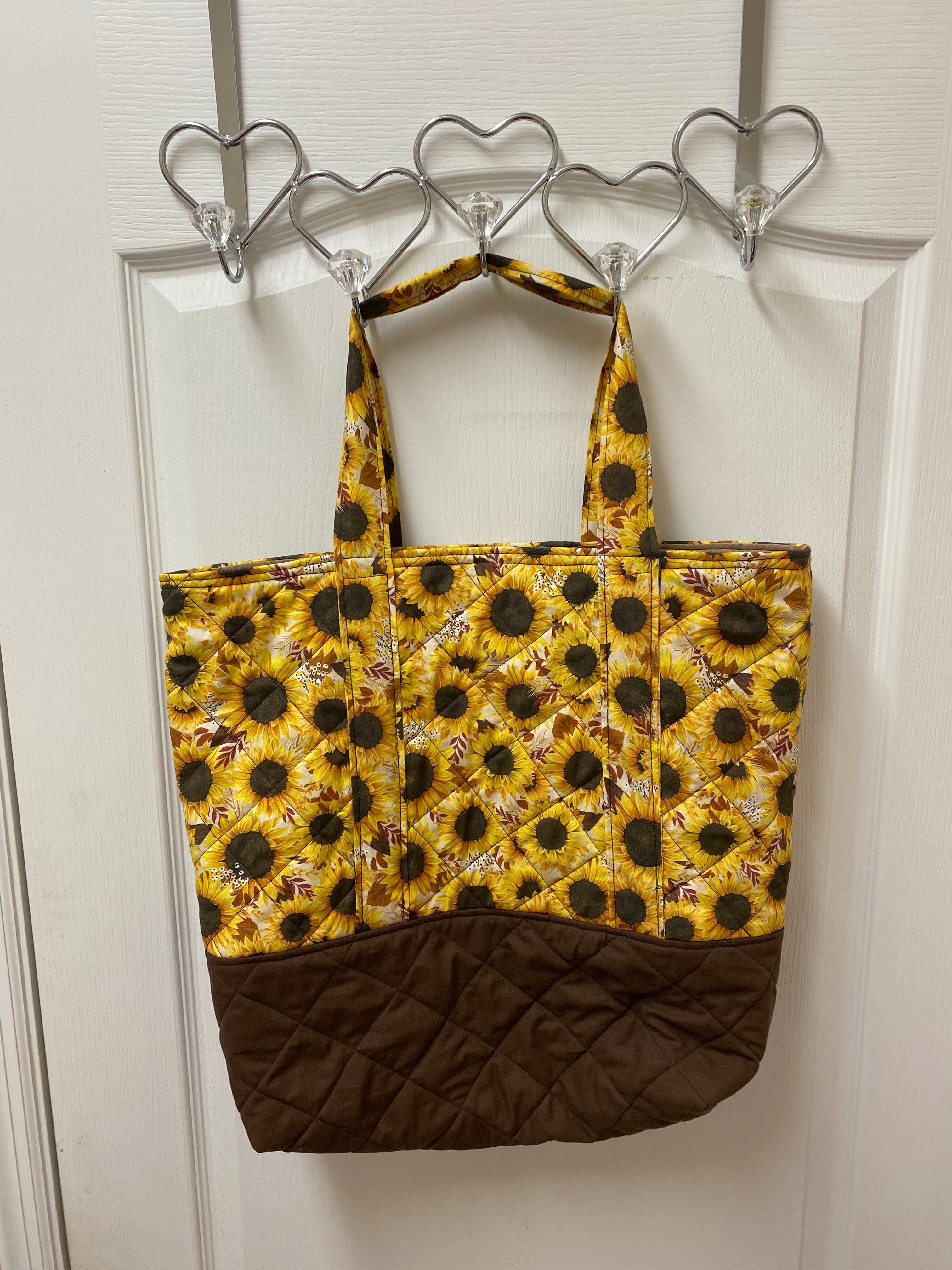 Handmade Lined Oversize Quilted Sun Flowers Tote Bag