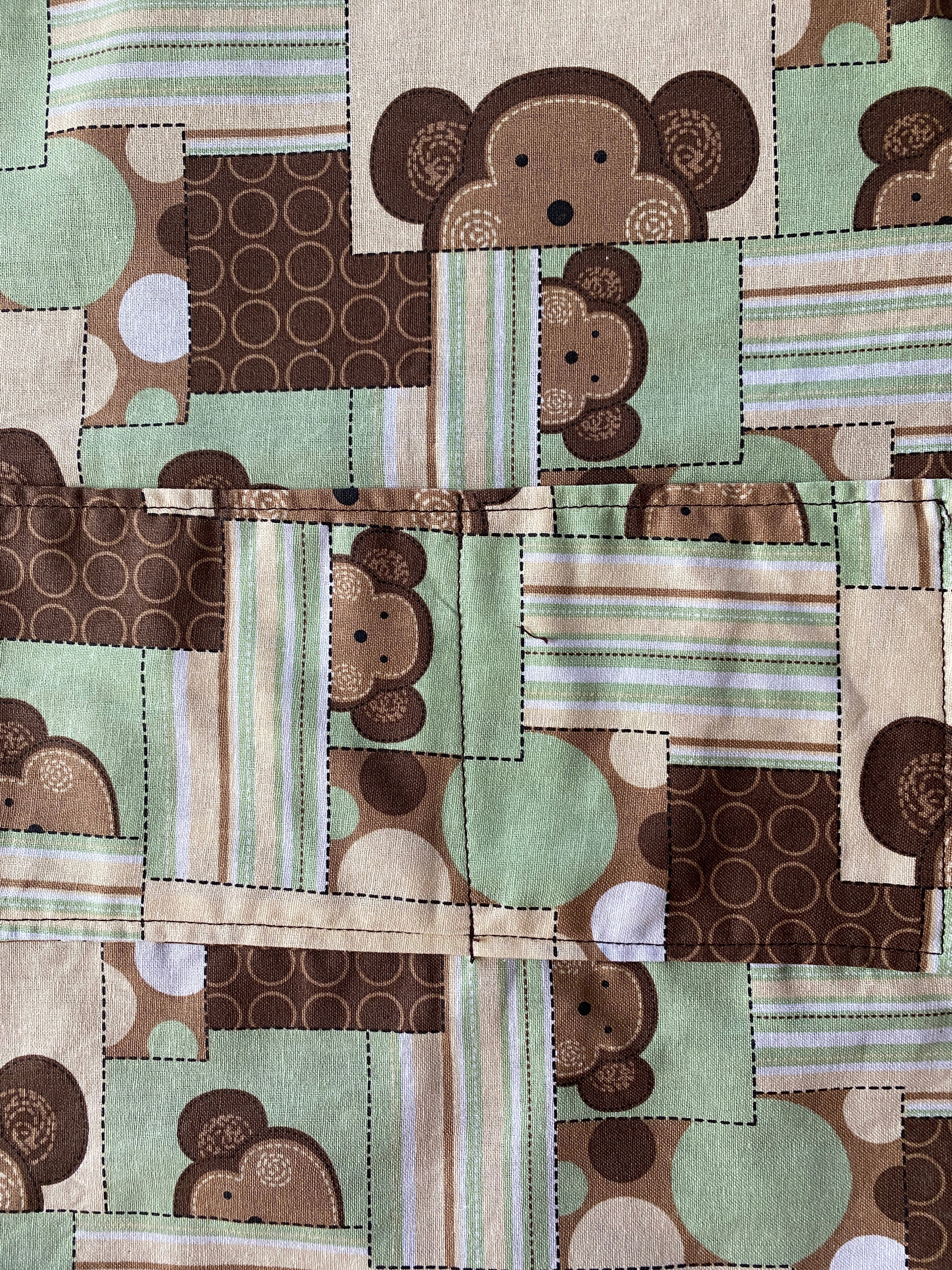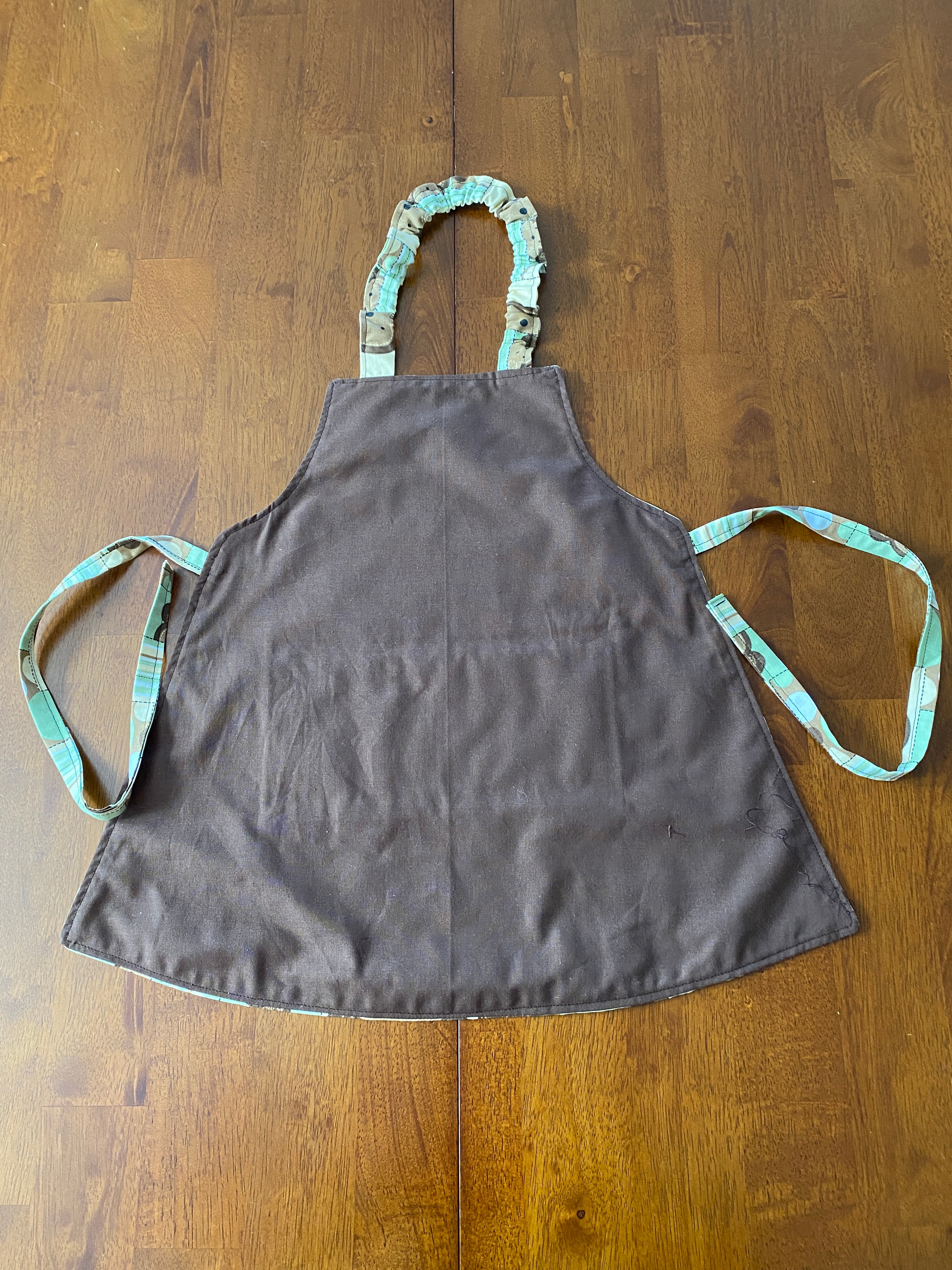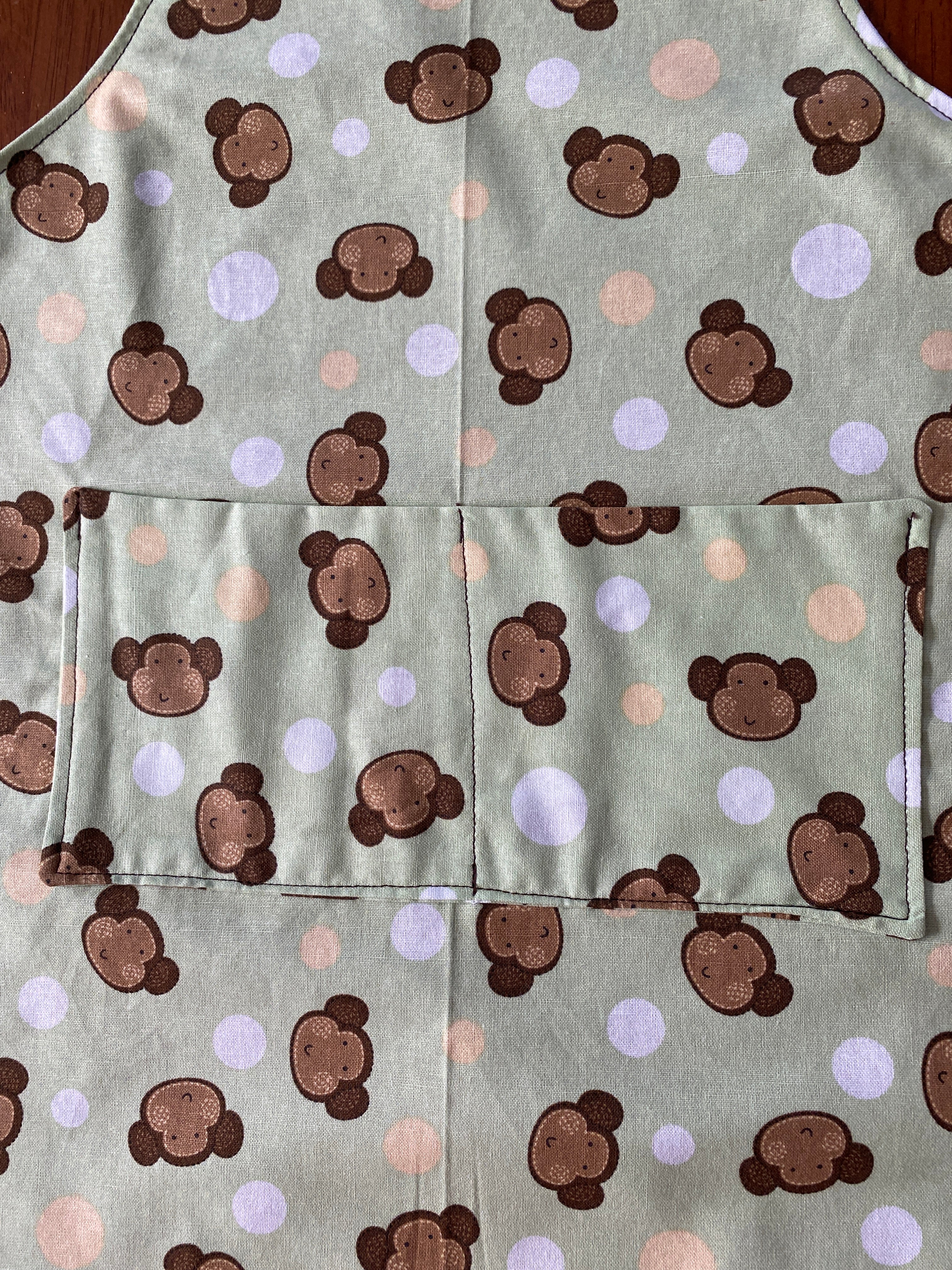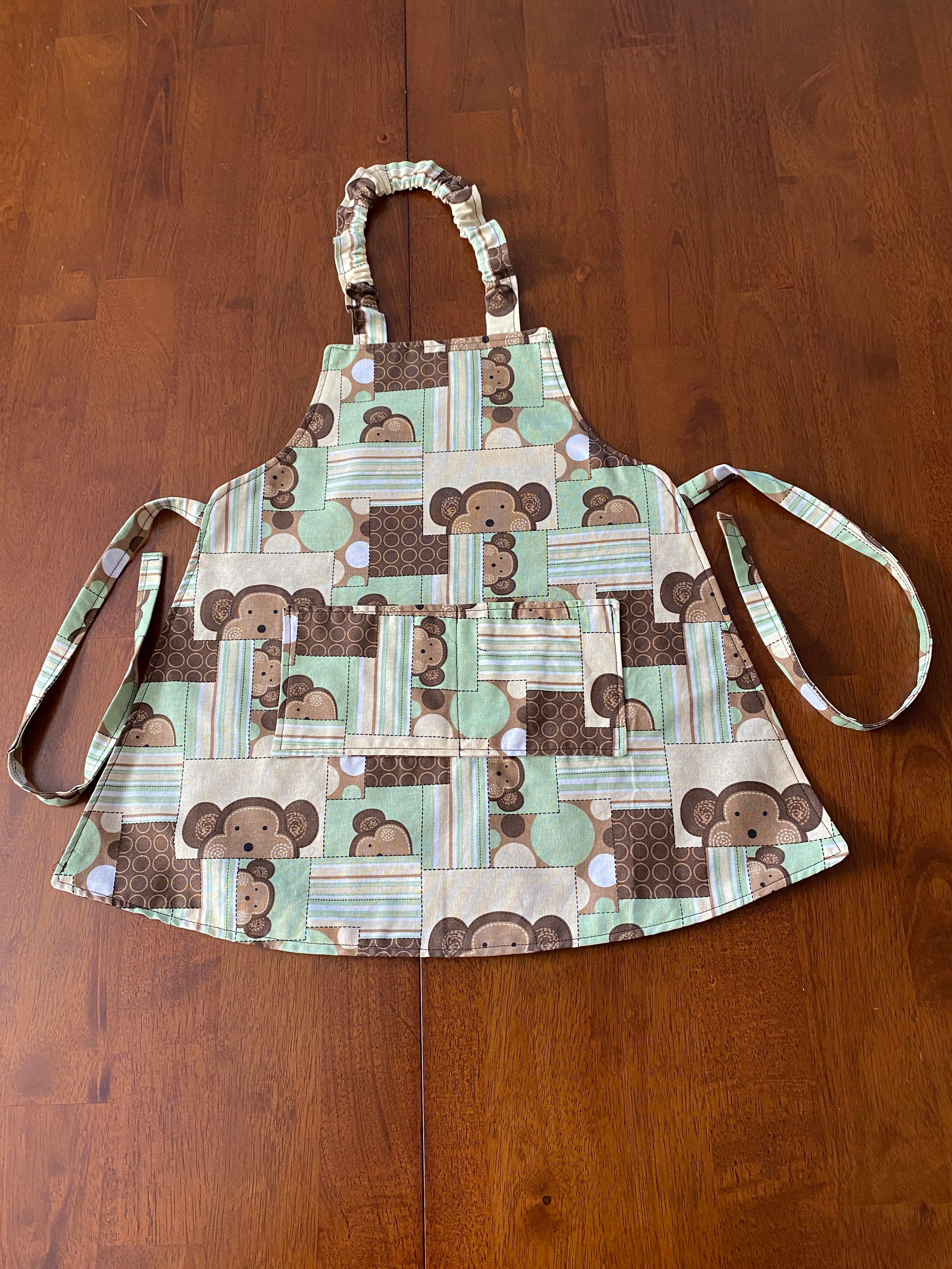 Reversible Child Apron with Pockets Featuring Monkey Faces